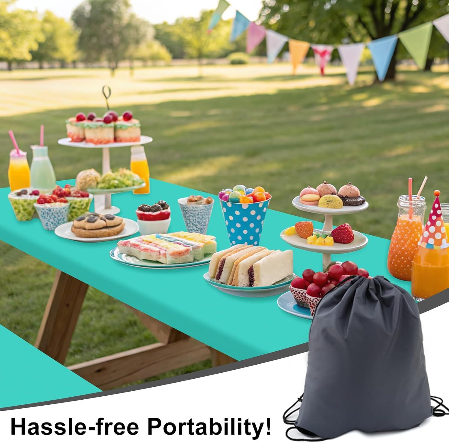 Smiry Picnic Table Cover with Bench Covers, Waterproof Elastic Fitted Polyester Tablecloths for 6 Ft Rectangle Tables, Washable Windproof Tablecloth for Camping, RV & Outdoor (Black, 30x72 Inches)(Teal)