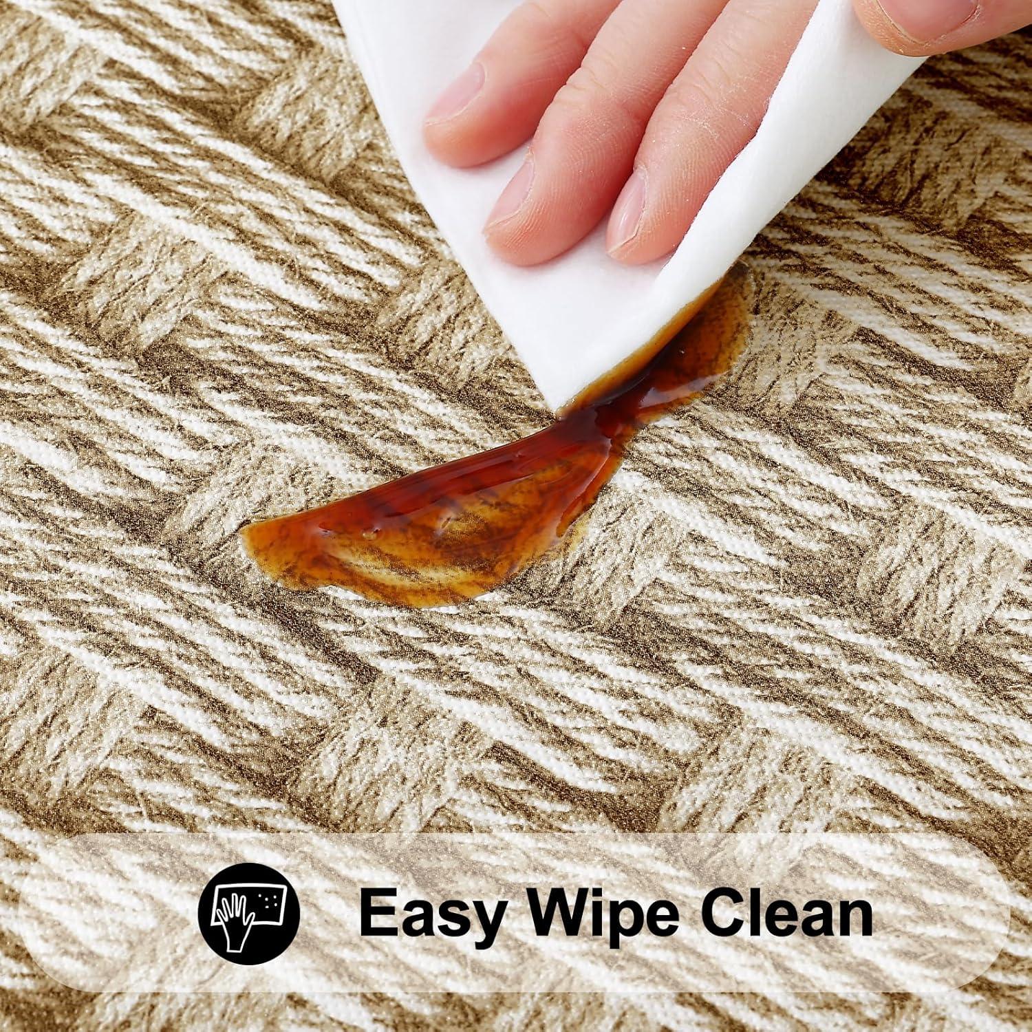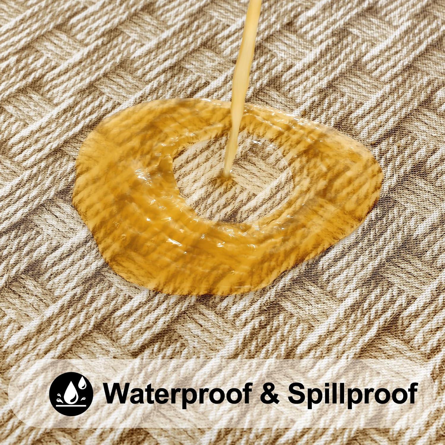 [Waterproof & Wipe Clean] Our table cover surface is made of selected vinyl material, which can effectively waterproof. Spill proof coating makes tablecloth easy to clean, just wipe it off with a damp sponge or rag in a minute.