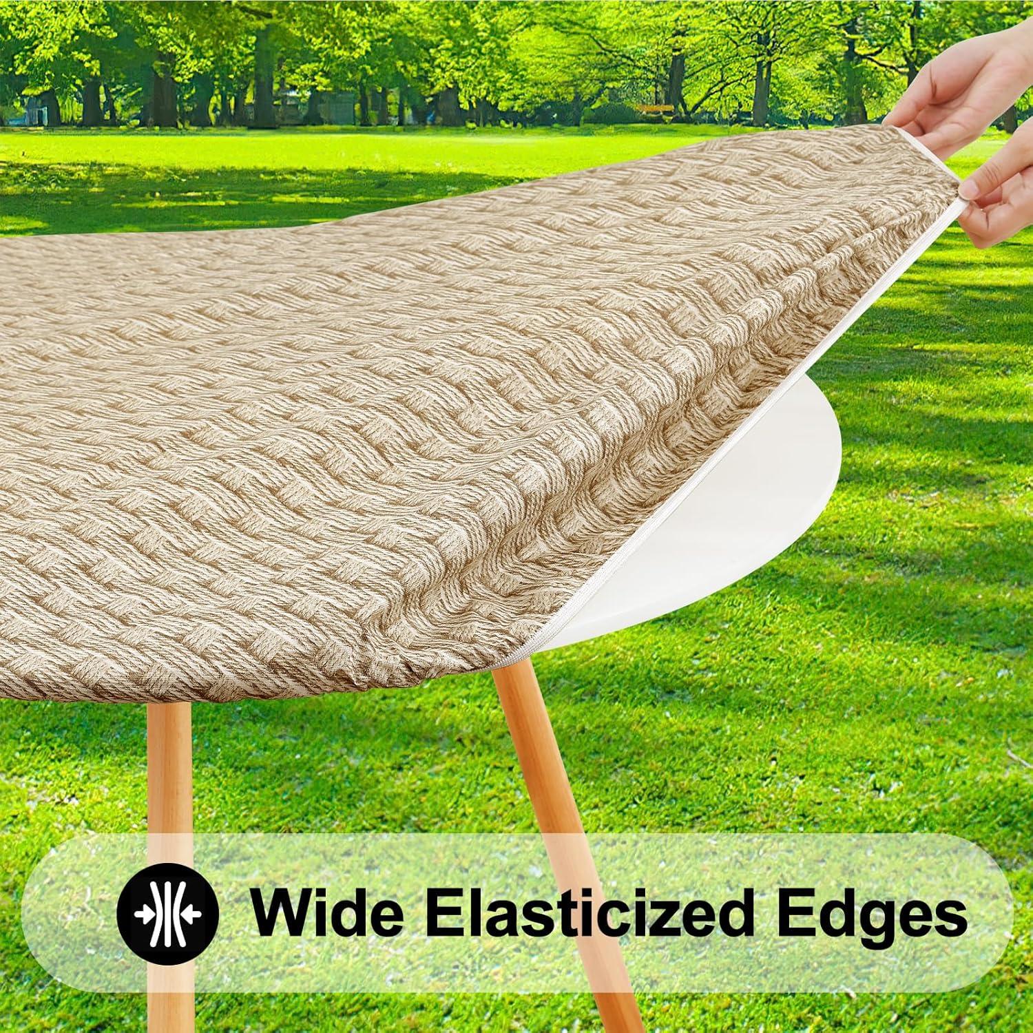 [Secure Fit with Windproof Design] Smiry's elastic-edged tablecloth ensures a snug fit, eliminating movement and the need for clips. Say goodbye to disruptions caused by wind or tugging, and savor your meals undisturbed.