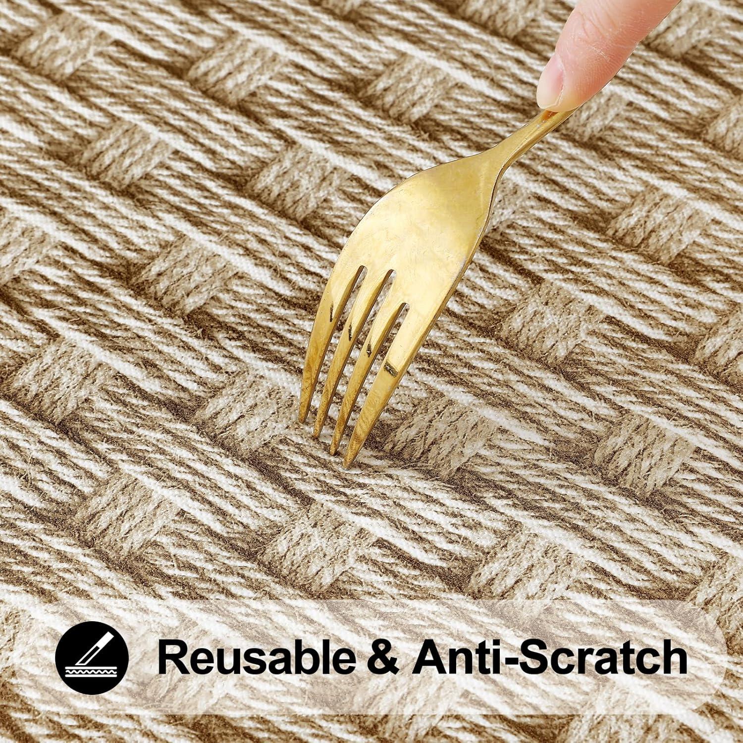 [Non-Slip Flannel Backing] Our tablecloths are reinforced with soft flannel backing so that they do not slip off when used. Thickened suede can also give tables more gentle protection, better heat proof, scratch proof.