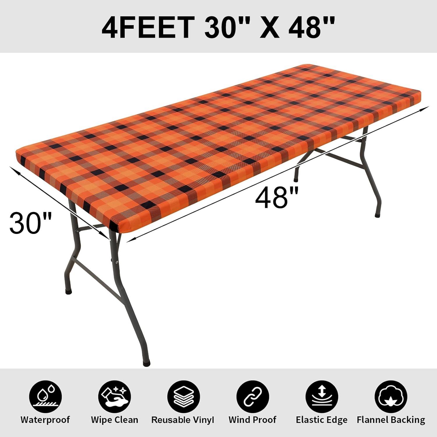 Smiry Rectangle Picnic Table Cloth, Elastic Waterproof Fitted Vinyl Tablecloth for 4 FT Tables, Flannel Backed Buffalo Plaid Table Covers for Dining, Camping, Outdoor (White and Grey, 30" x 48")(Orange and Yellow)