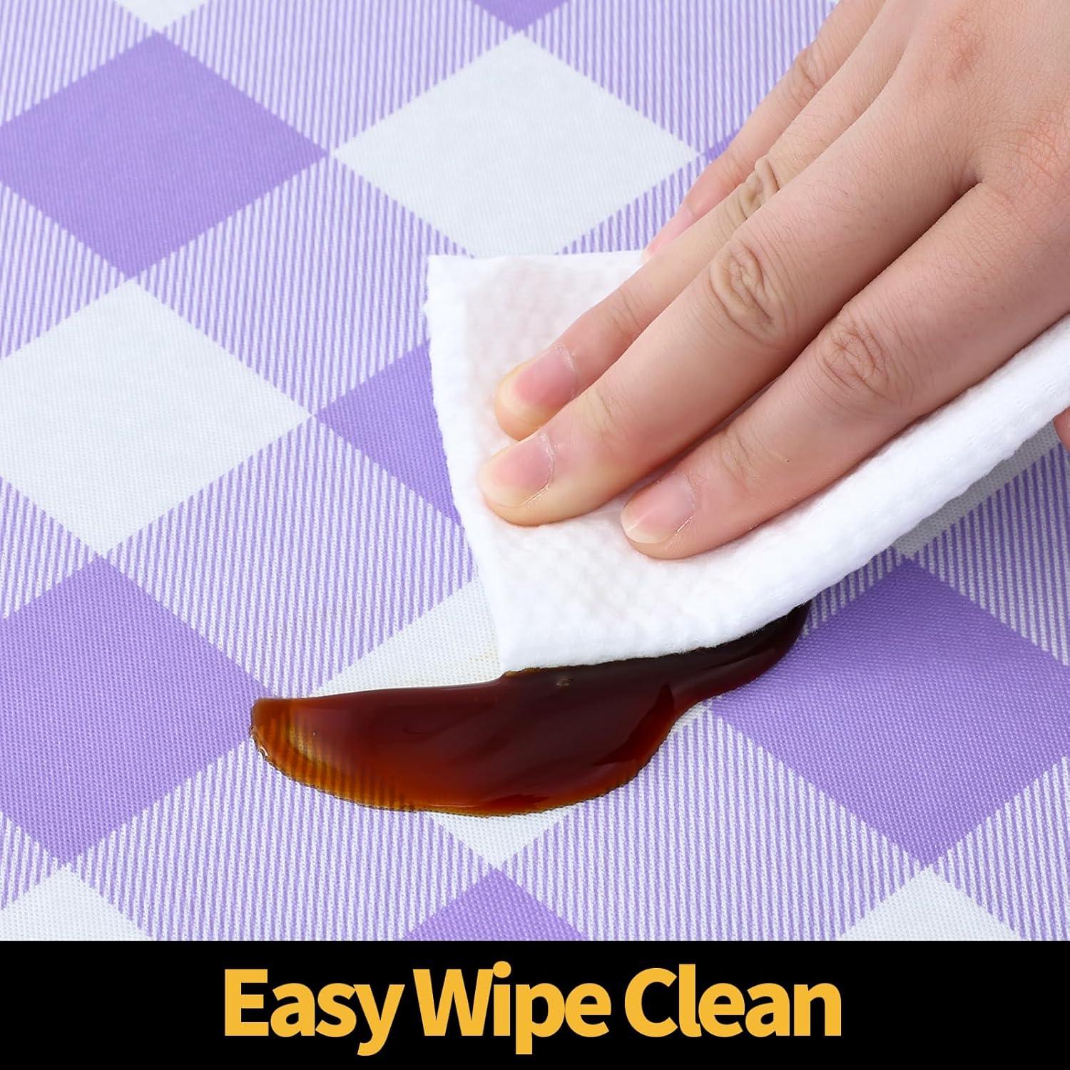 [Waterproof & Wipe Clean] Our table covers with waterproof vinyl surface, will not let the oil, milk and other liquid penetration on to the tables. And this table cover is very easy to clean and take care of, just wipe it gently with a damp cloth, bringing