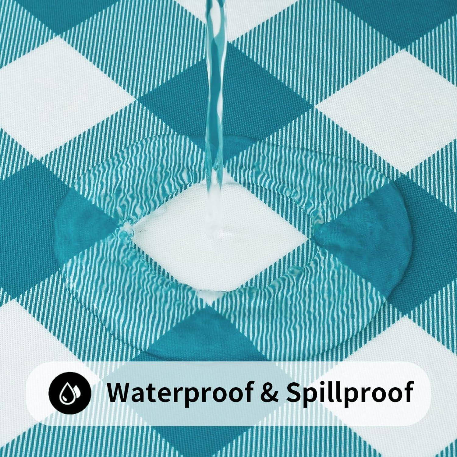 imageSmiry Rectangle Picnic Table Cloth Elastic Waterproof Fitted Vinyl Tablecloth for 4 FT Tables Flannel Backed Buffalo Plaid Table Covers for Dining Camping Outdoor White and Grey 30quot x 48quotTurquoise and White