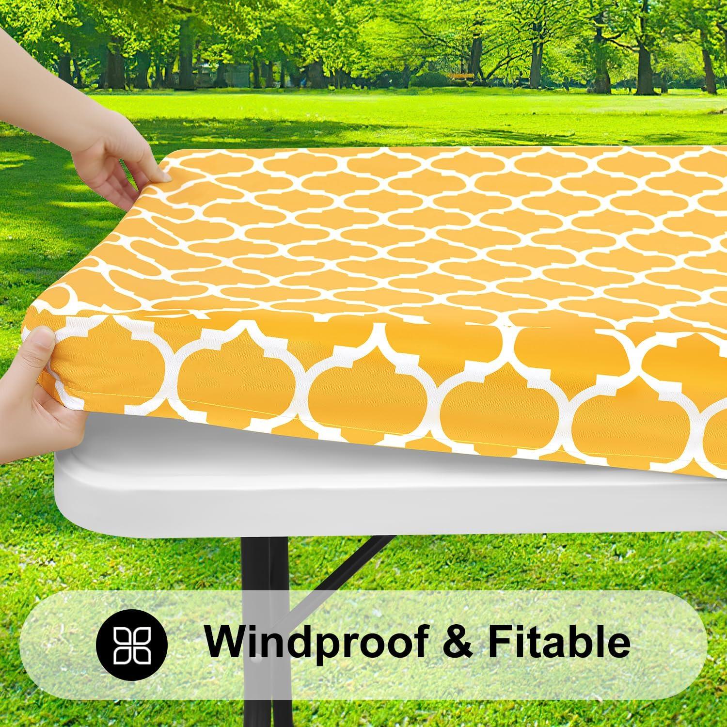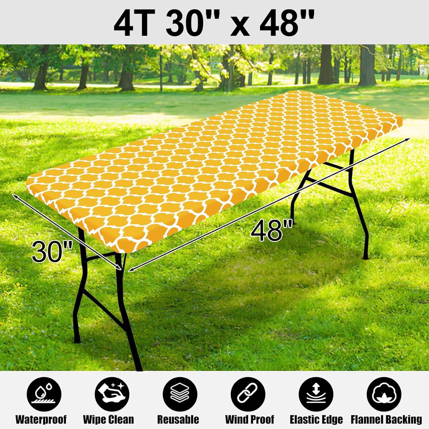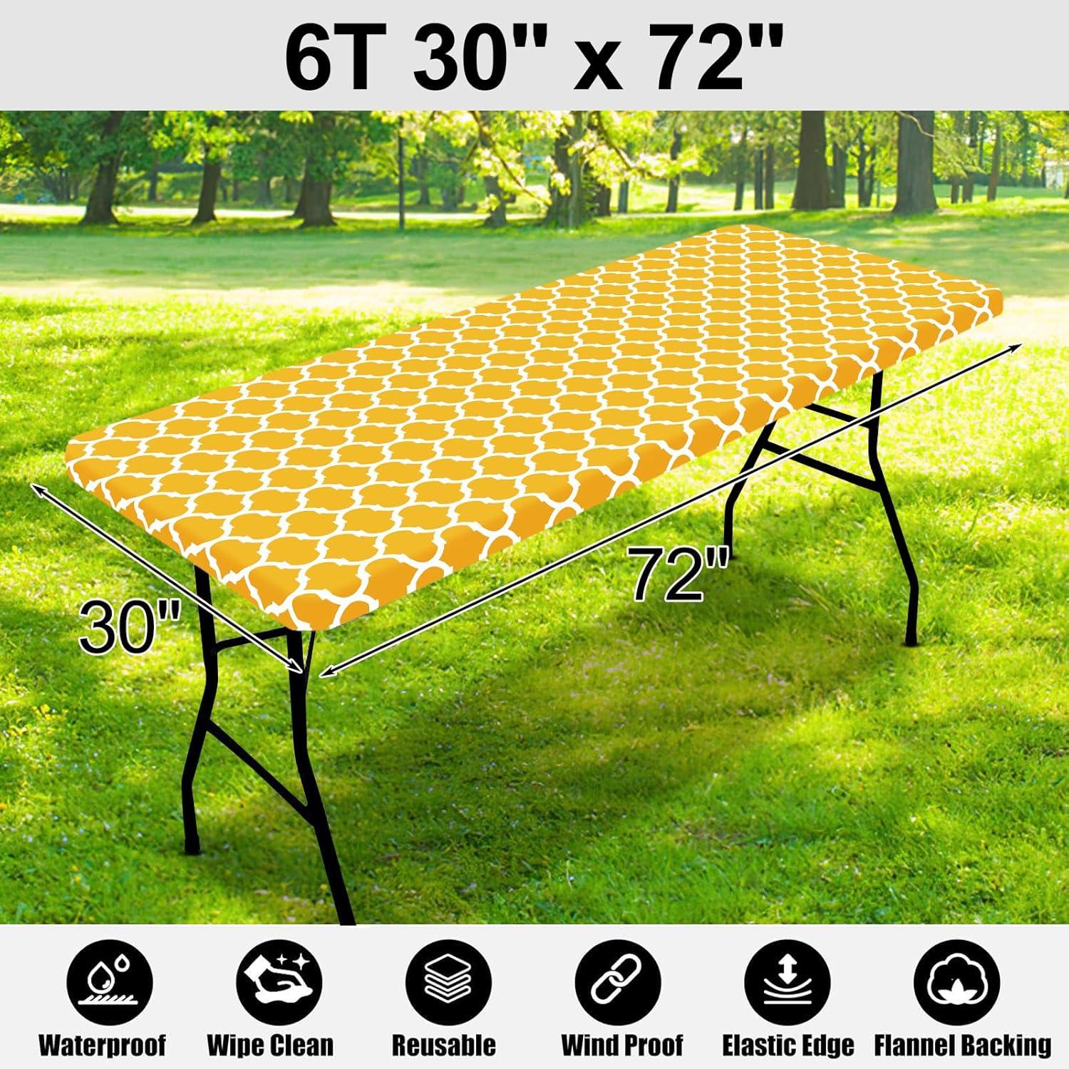 imageSmiry Rectangle Picnic Table Cover Waterproof Elastic Fitted Camping Tablecloths for 6 Foot Tables Wipeable Flannel Backed Vinyl Tablecloth Protector for Indoor Outdoor Blue 30x72 InchesMustard Yellow