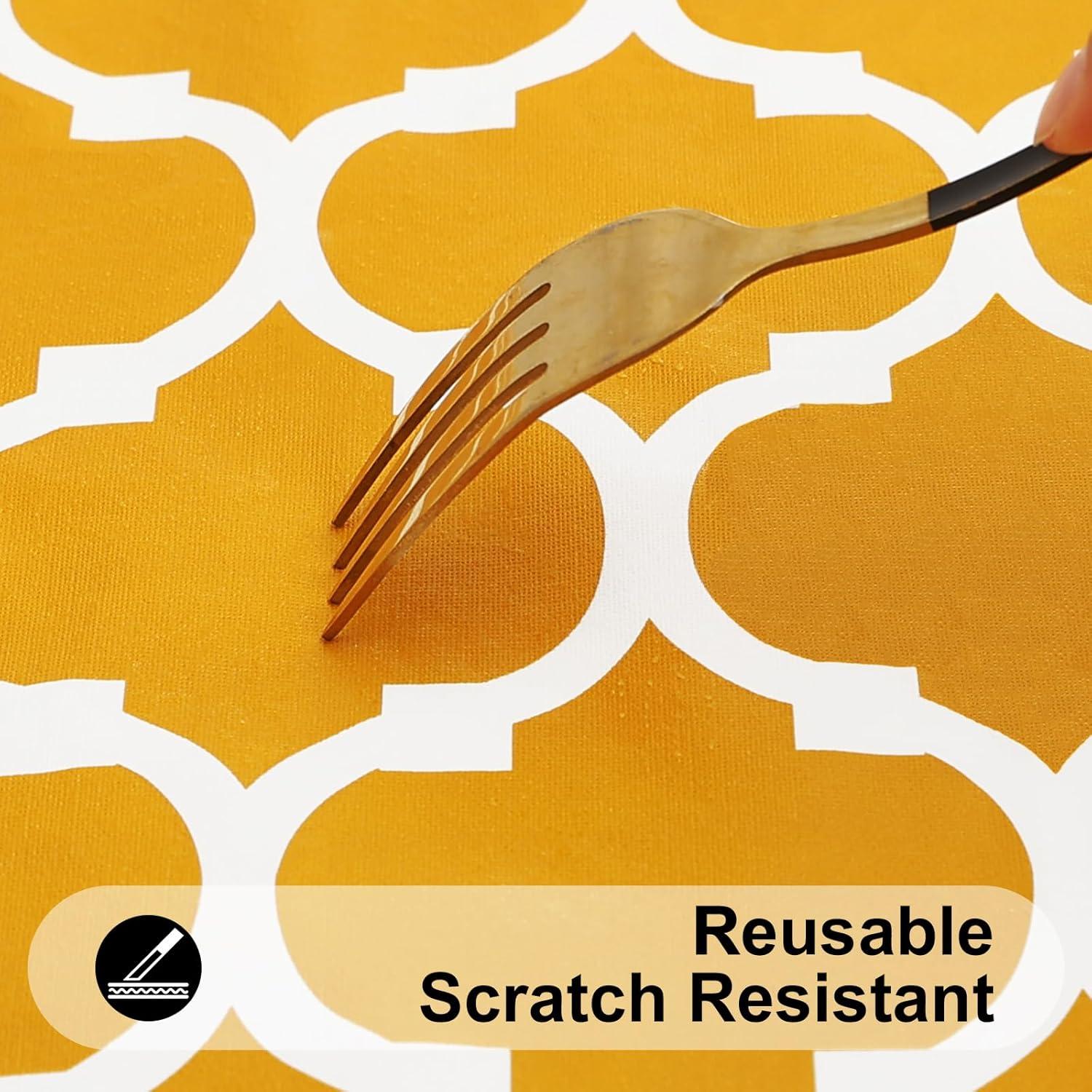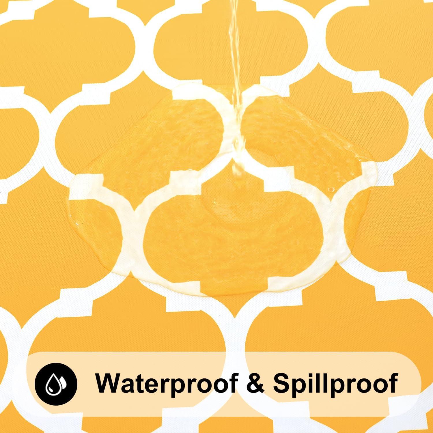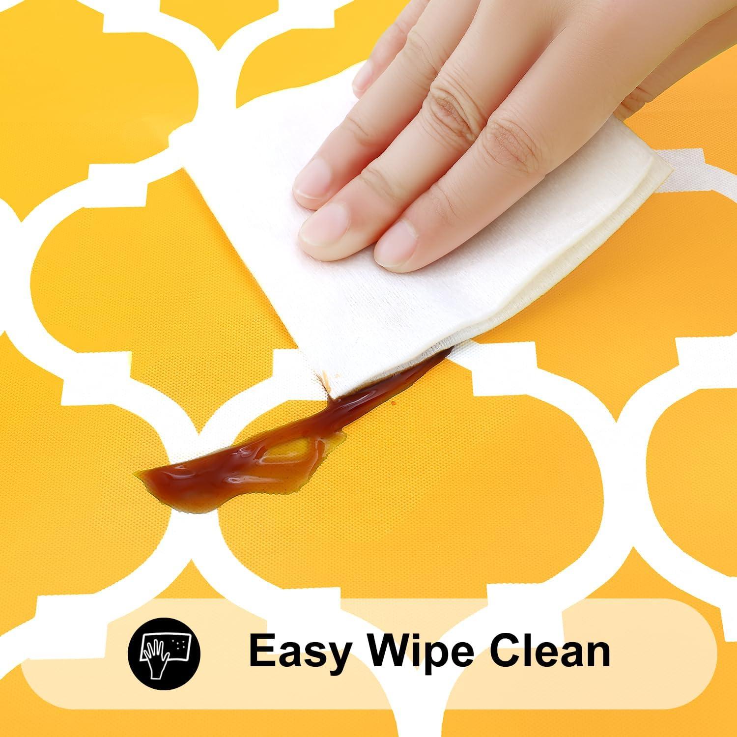 [Waterproof & Wipe Clean] Our table cover surface is made of selected vinyl material, which can effectively waterproof. Spill proof coating makes tablecloth easy to clean, just wipe it off with a damp sponge or rag in a minute.