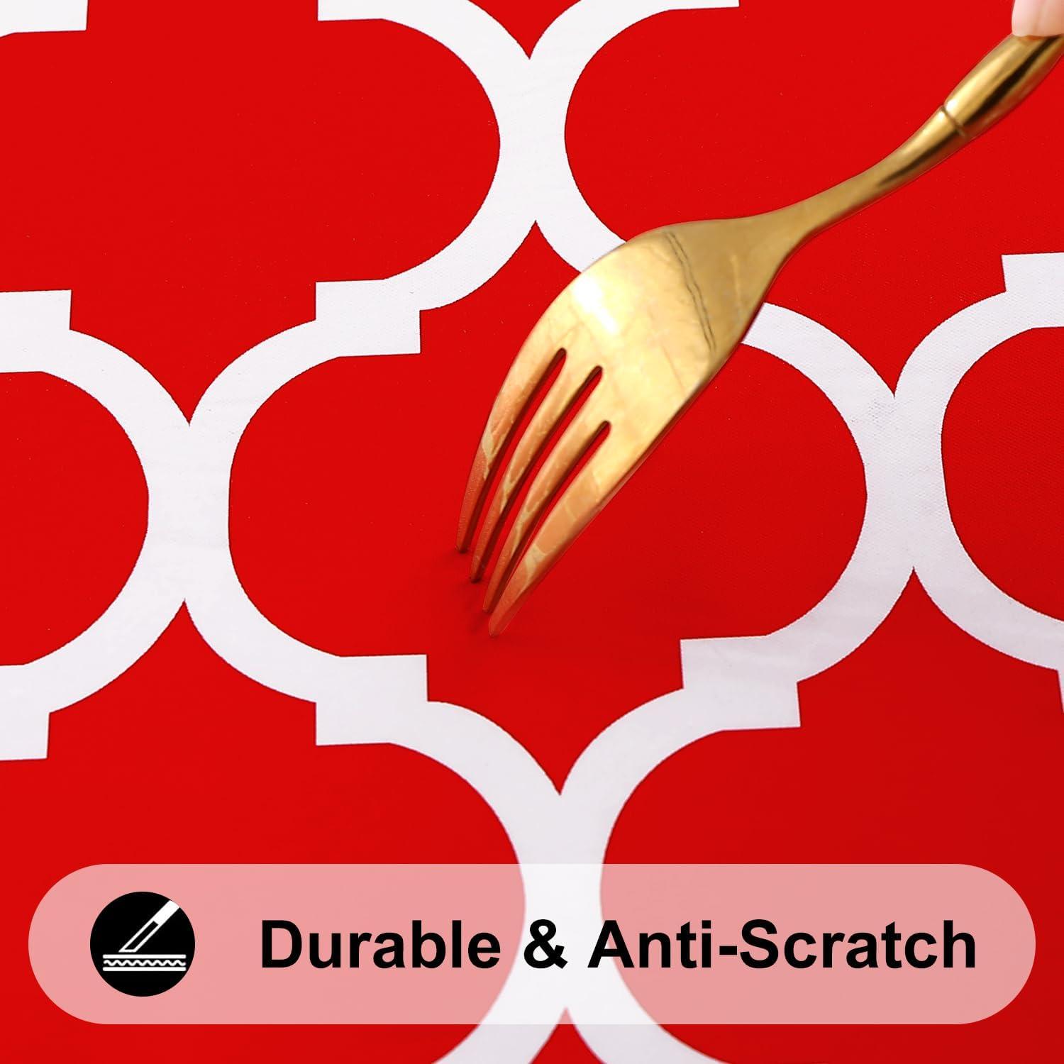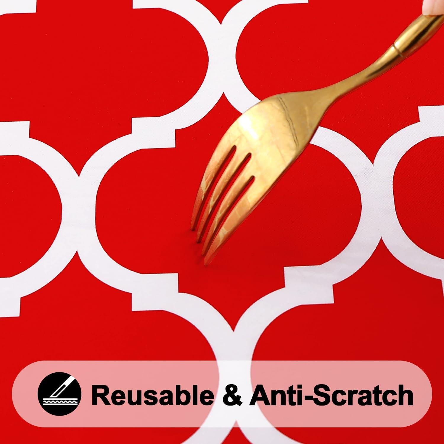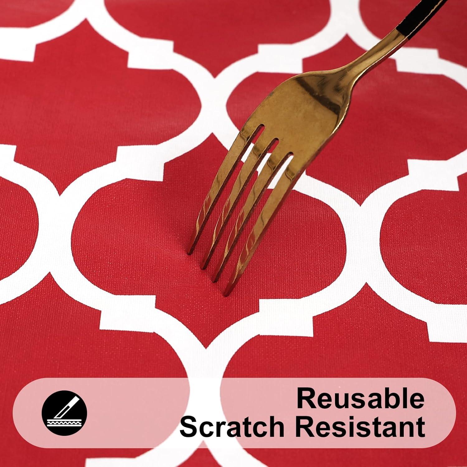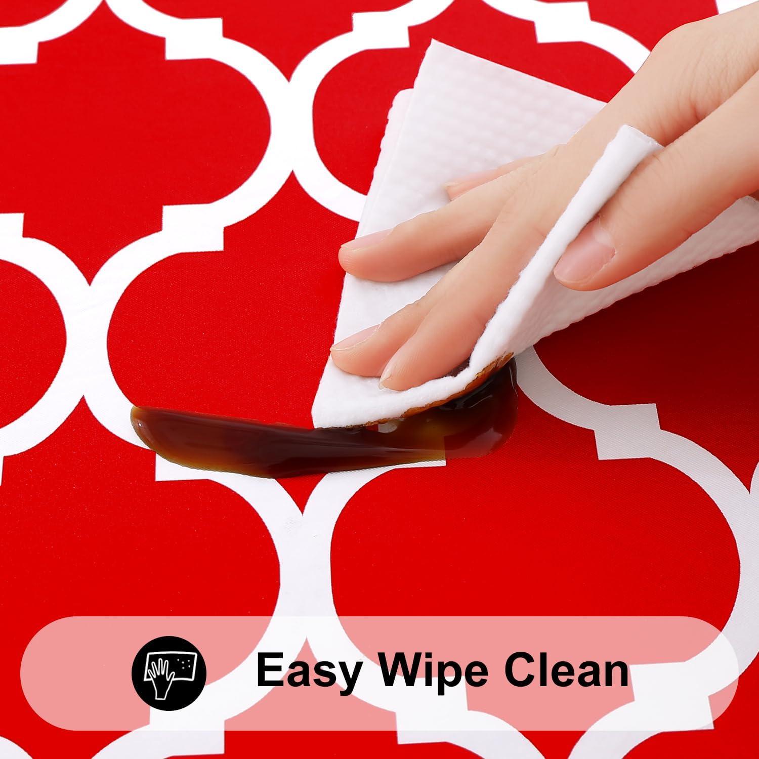 [Waterproof & Wipe Clean] Our table cover surface is made of selected vinyl material, which can effectively waterproof. Spill proof coating makes tablecloth easy to clean, just wipe it off with a damp sponge or rag in a minute.