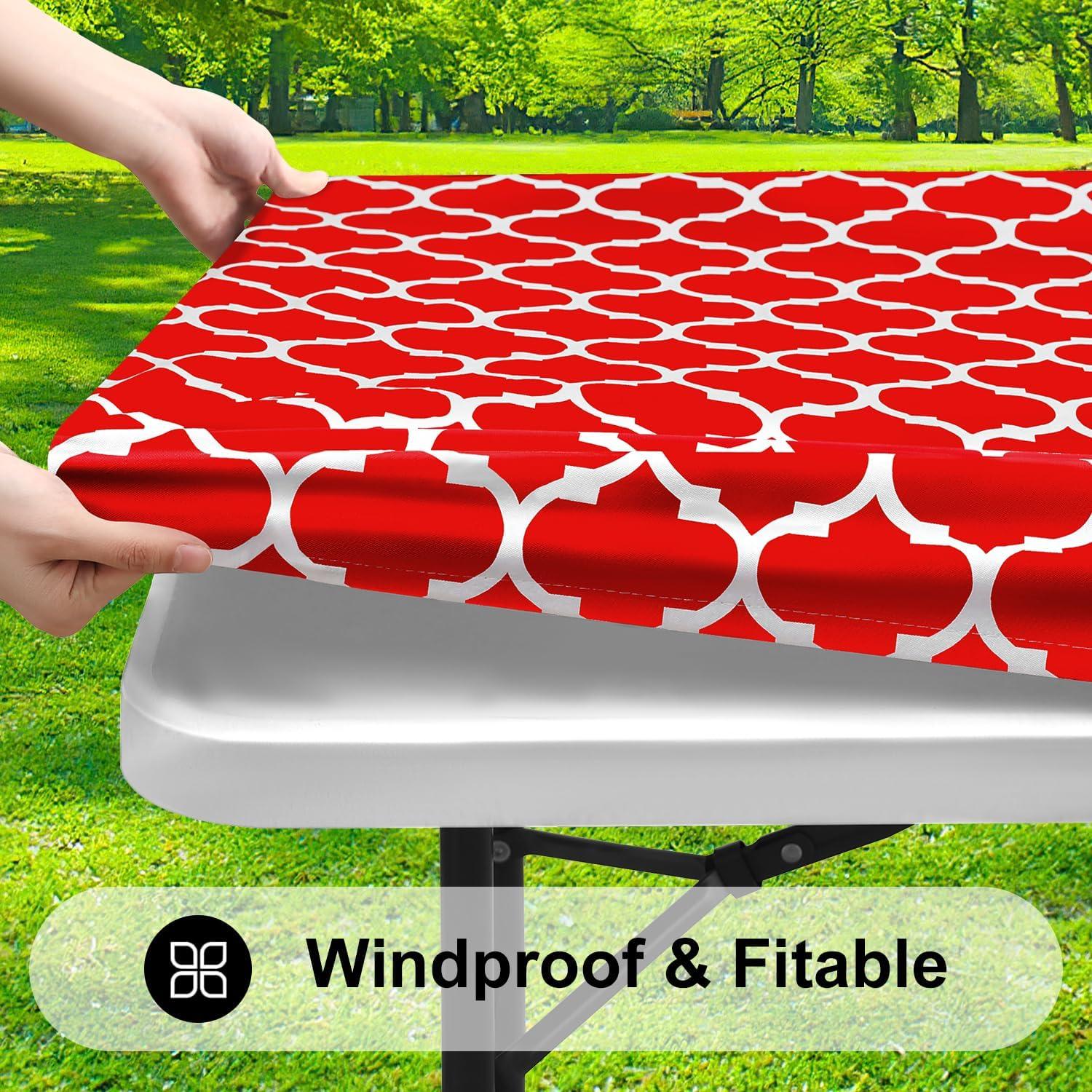 imageSmiry Rectangle Picnic Table Cover Waterproof Elastic Fitted Camping Tablecloths for 6 Foot Tables Wipeable Flannel Backed Vinyl Tablecloth Protector for Indoor Outdoor Blue 30x72 InchesRed