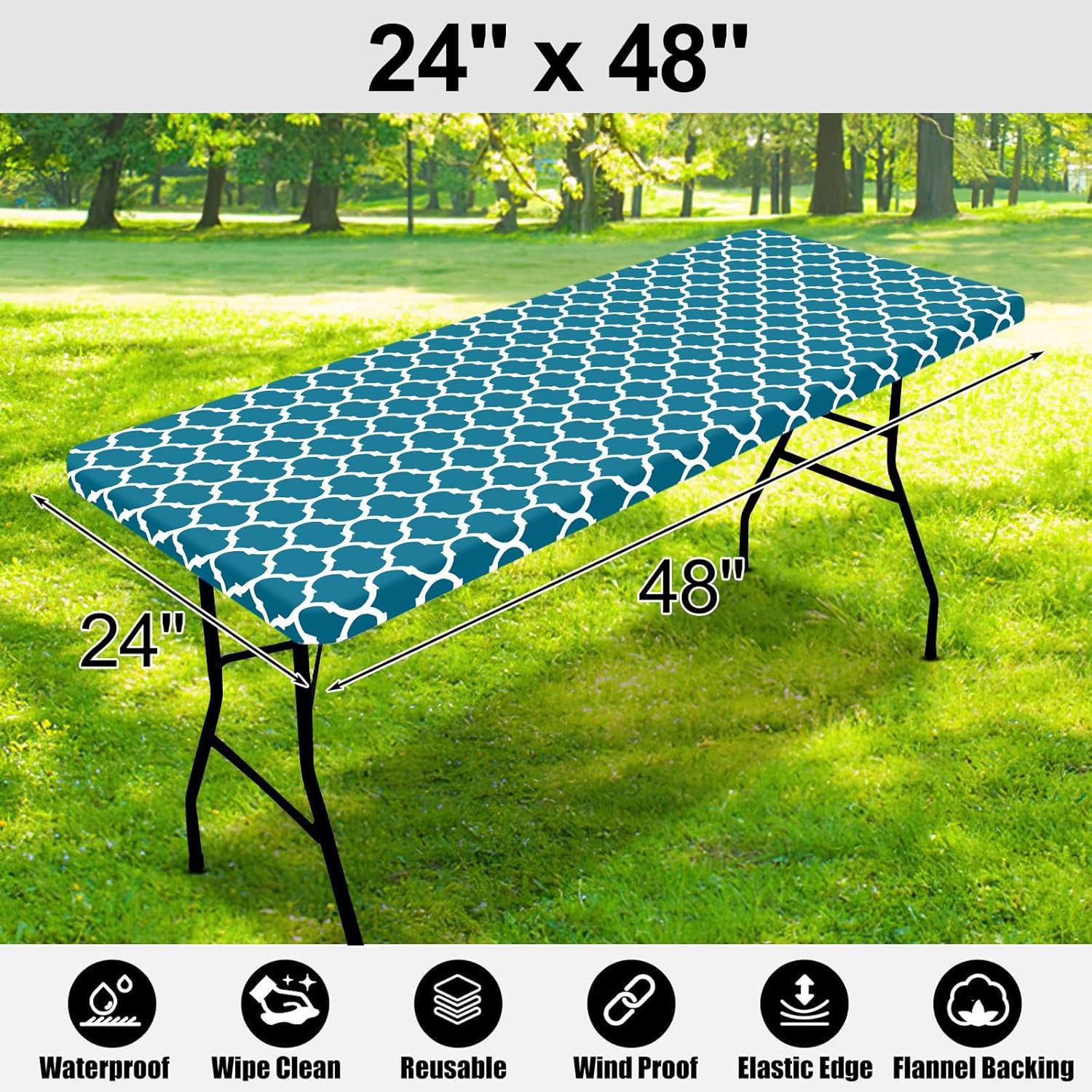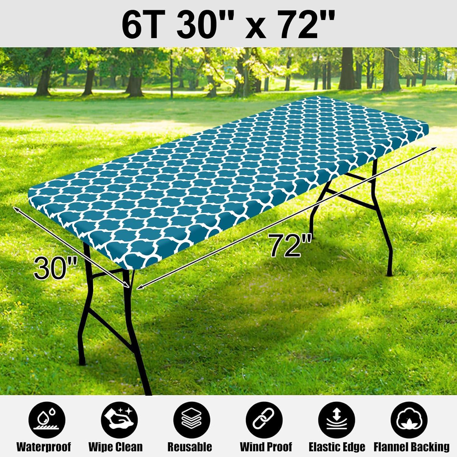 imageSmiry Rectangle Picnic Table Cover Waterproof Elastic Fitted Camping Tablecloths for 6 Foot Tables Wipeable Flannel Backed Vinyl Tablecloth Protector for Indoor Outdoor Blue 30x72 InchesTurquoise