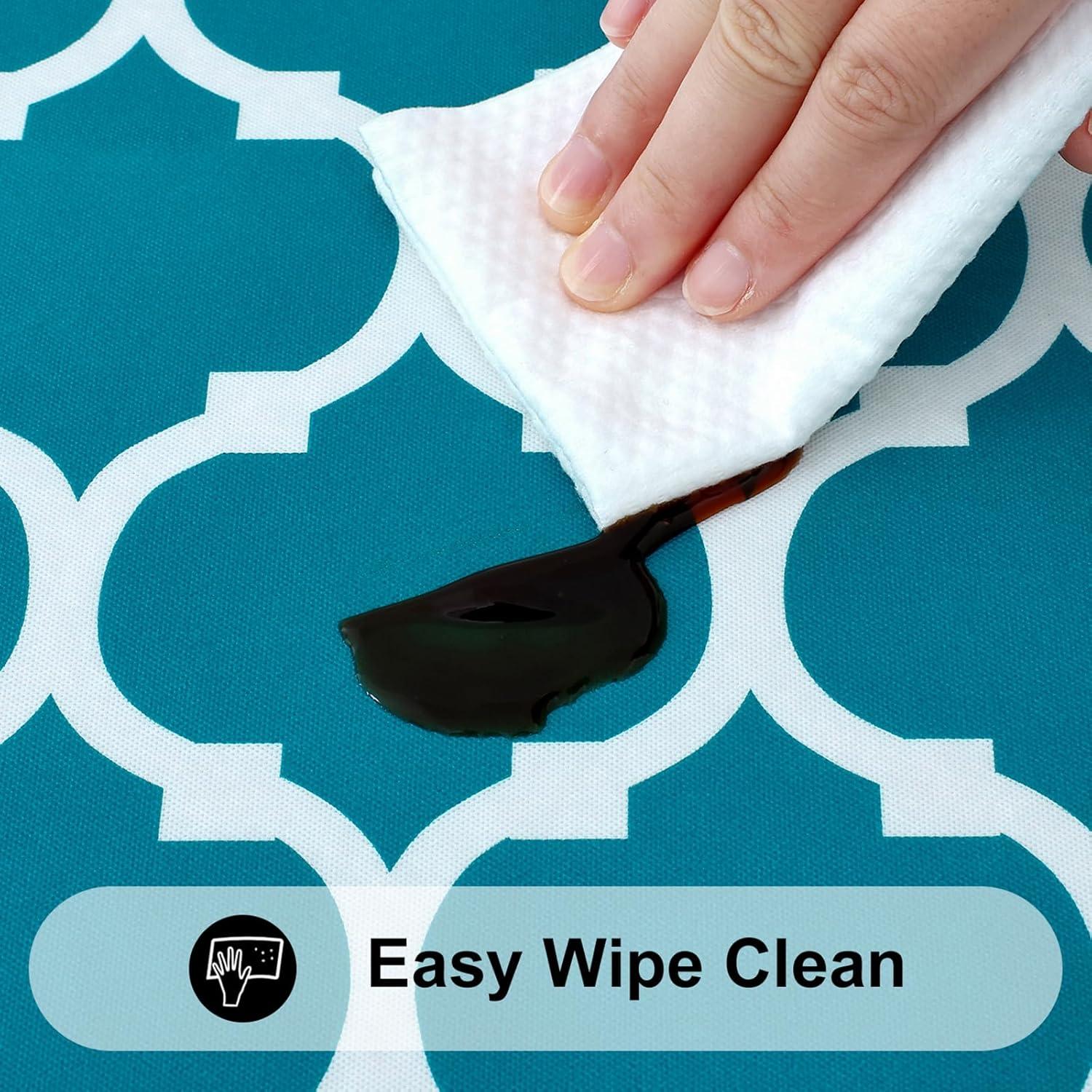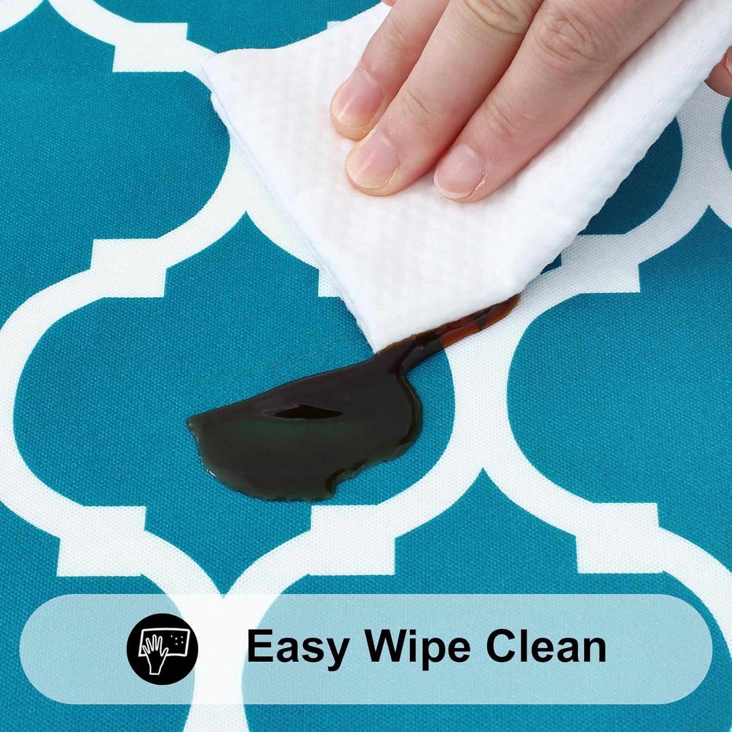 [Waterproof & Wipe Clean] Our table cover surface is made of selected vinyl material, which can effectively waterproof. Spill proof coating makes tablecloth easy to clean, just wipe it off with a damp sponge or rag in a minute.