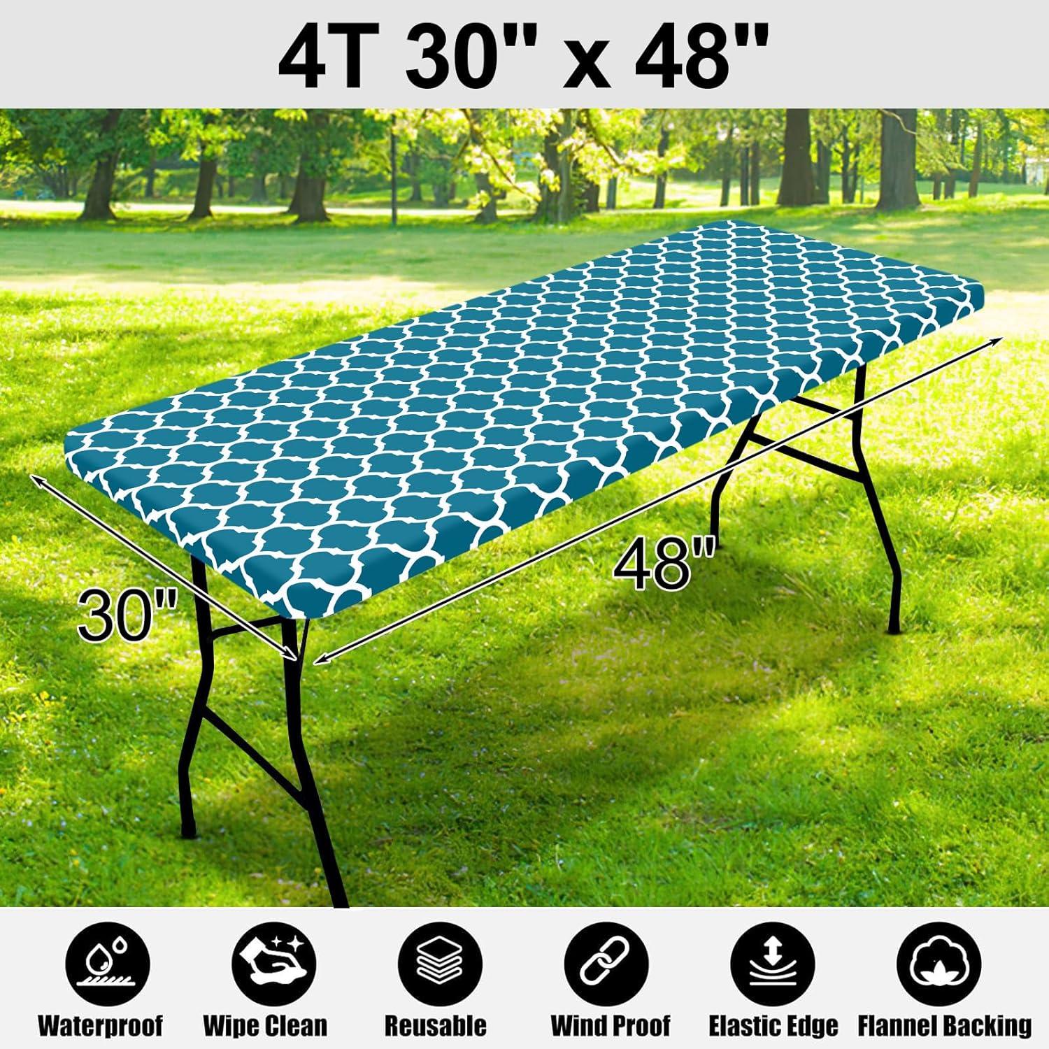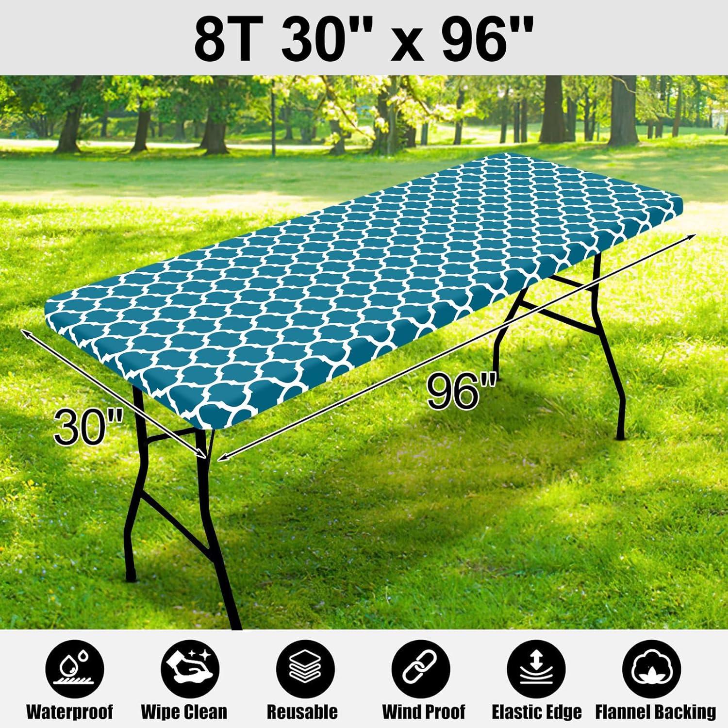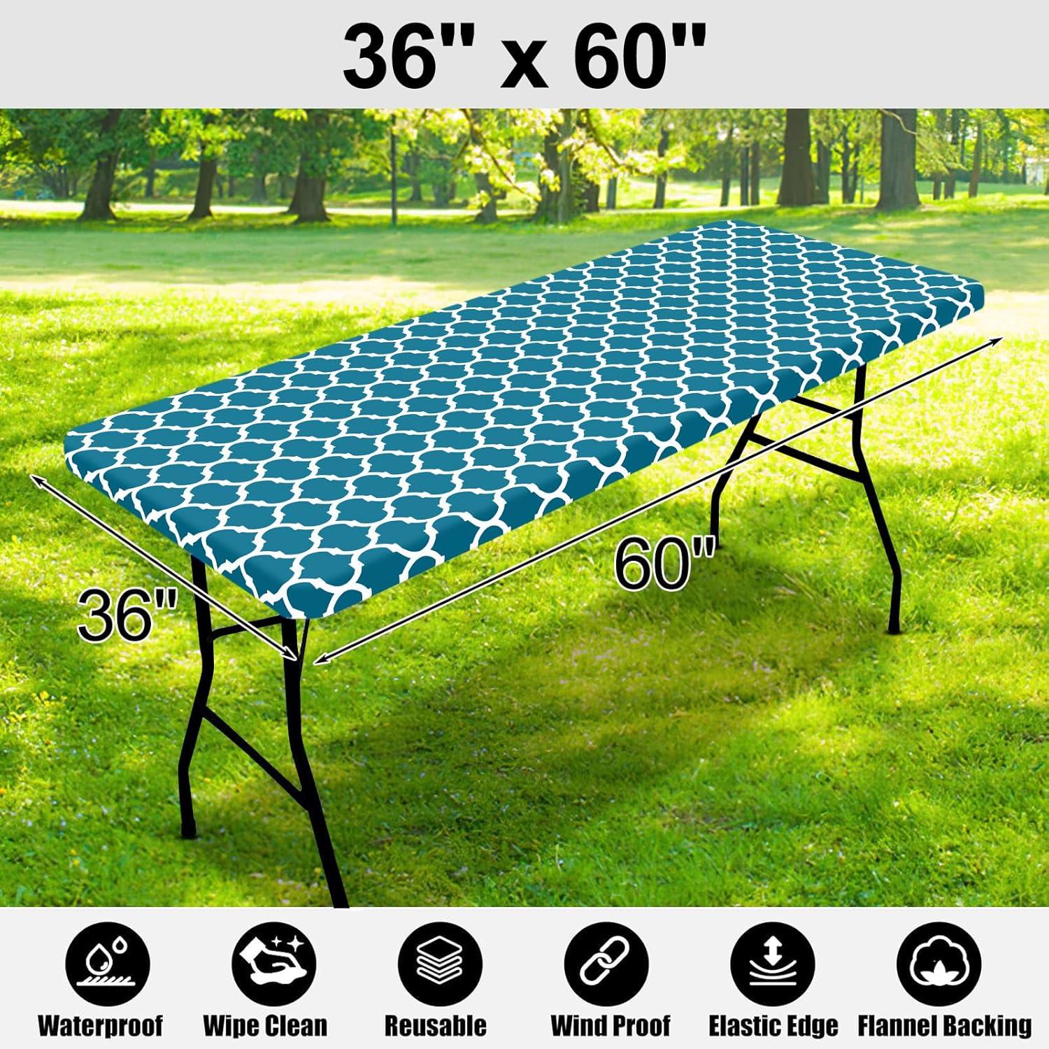 imageSmiry Rectangle Picnic Table Cover Waterproof Elastic Fitted Camping Tablecloths for 6 Foot Tables Wipeable Flannel Backed Vinyl Tablecloth Protector for Indoor Outdoor Blue 30x72 InchesTeal