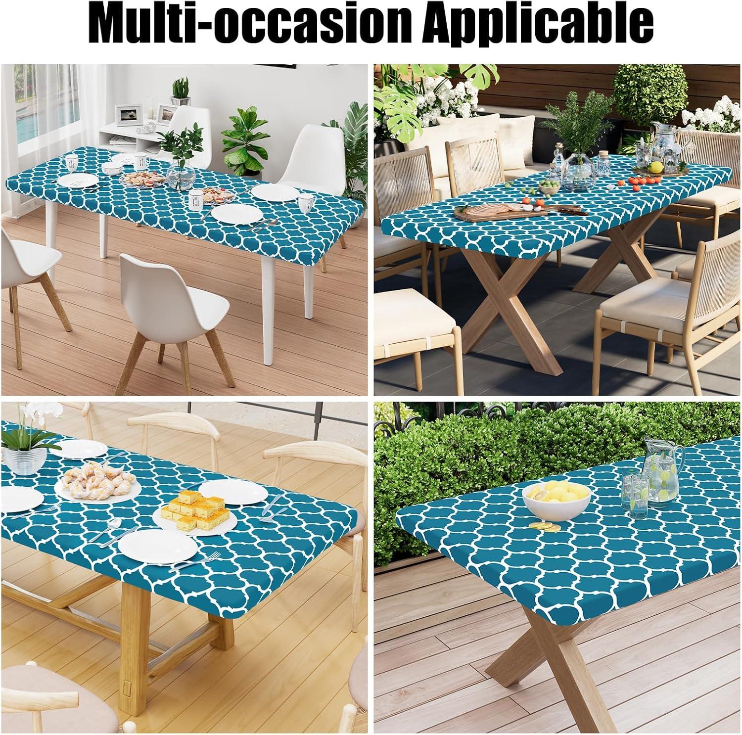 [Secure Fit with Windproof Design] Smiry's elastic-edged table cover ensures a snug fit, eliminating movement and the need for clips. Say goodbye to disruptions caused by wind or tugging, and savor your meals undisturbed.
