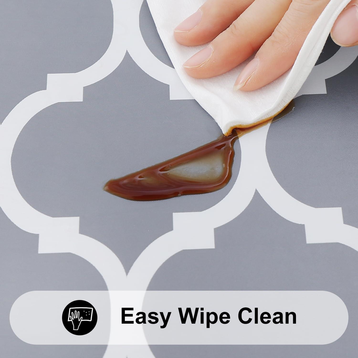 [Waterproof & Wipe Clean] Our table cover surface is made of selected vinyl material, which can effectively waterproof. Spill proof coating makes tablecloth easy to clean, just wipe it off with a damp sponge or rag in a minute.