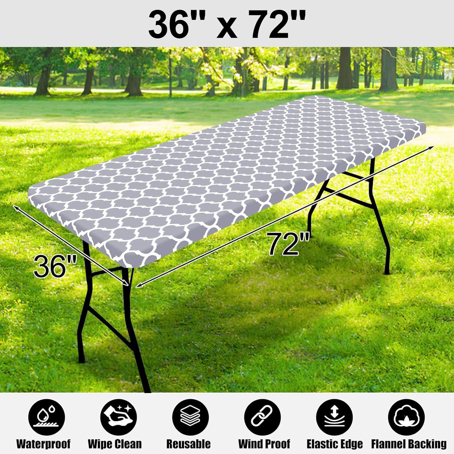 Smiry Rectangle Picnic Table Cover, Waterproof Elastic Fitted Camping Tablecloths for 6 Foot Tables, Wipeable Flannel Backed Vinyl Tablecloth Protector for Indoor, Outdoor (Coffee, 30x72 Inches)(Grey)