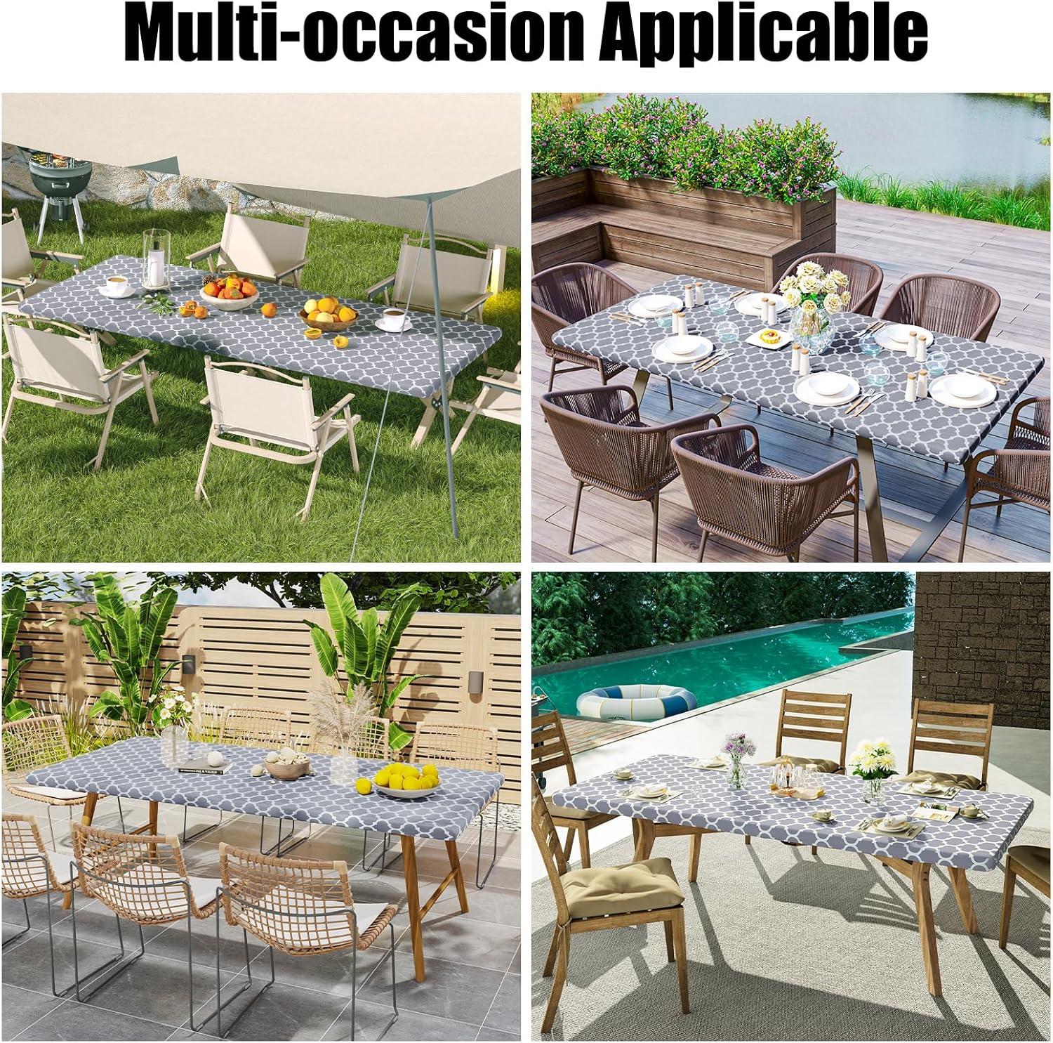 [Secure Fit with Windproof Design] Smiry's elastic-edged table cover ensures a snug fit, eliminating movement and the need for clips. Say goodbye to disruptions caused by wind or tugging, and savor your meals undisturbed.