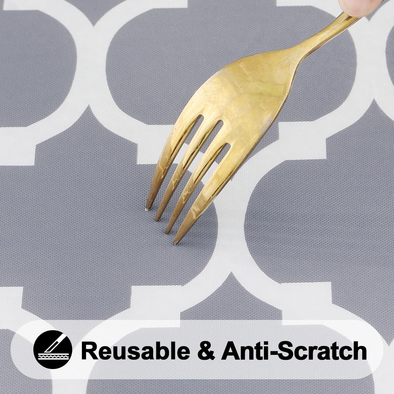[Non-Slip Flannel Backing] Our tablecloths are reinforced with soft flannel backing so that they do not slip off when used. Thickened suede can also give tables more gentle protection, better heat proof, scratch proof.