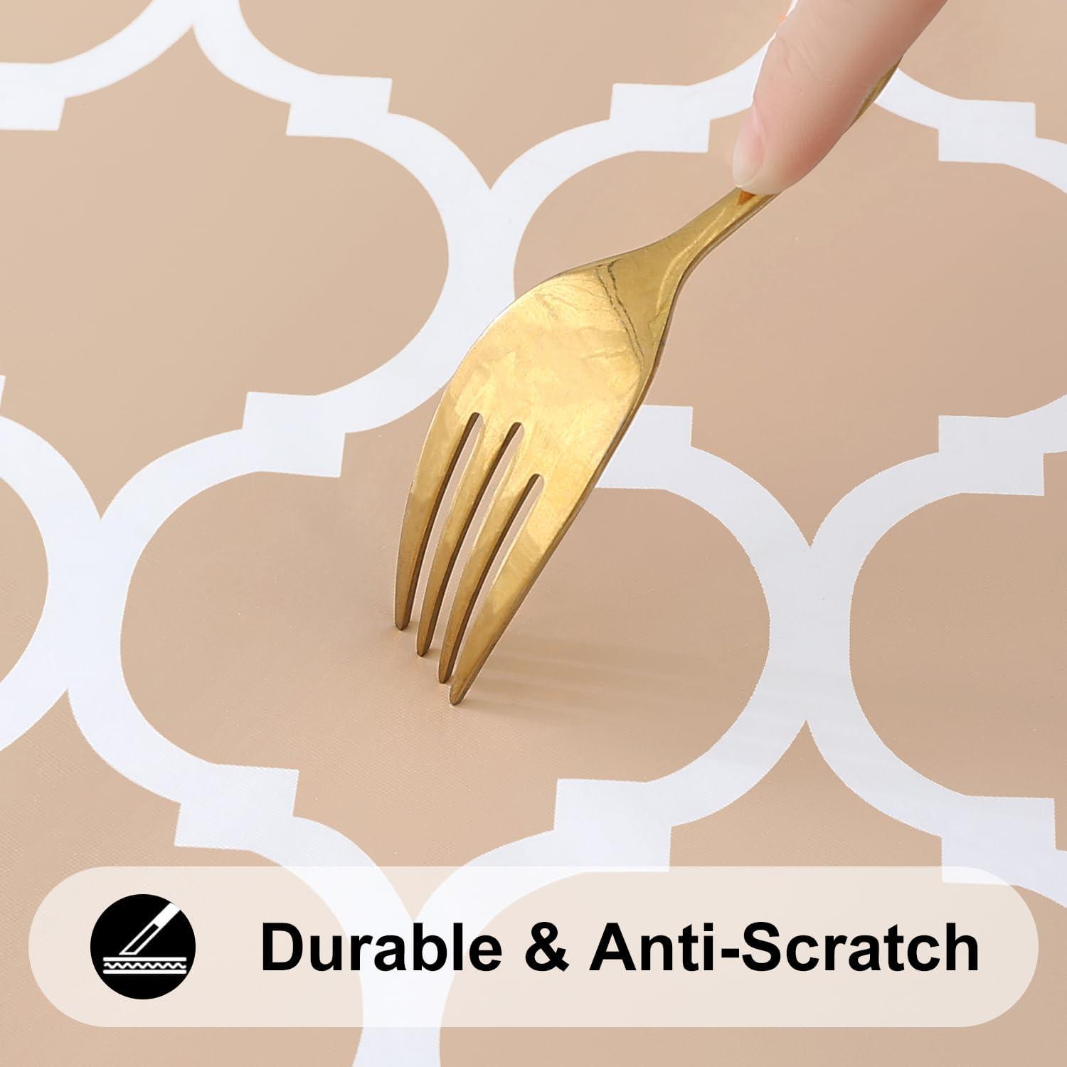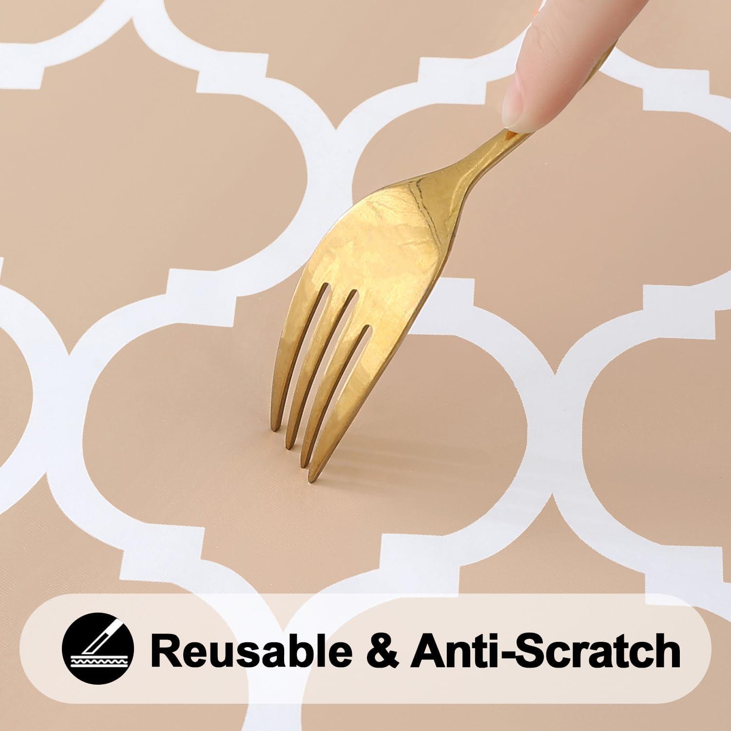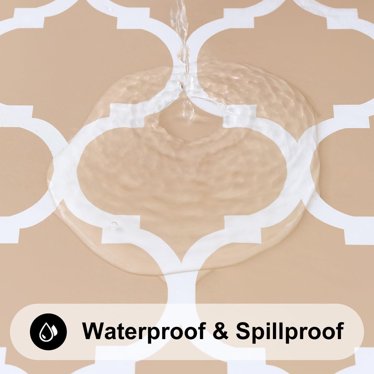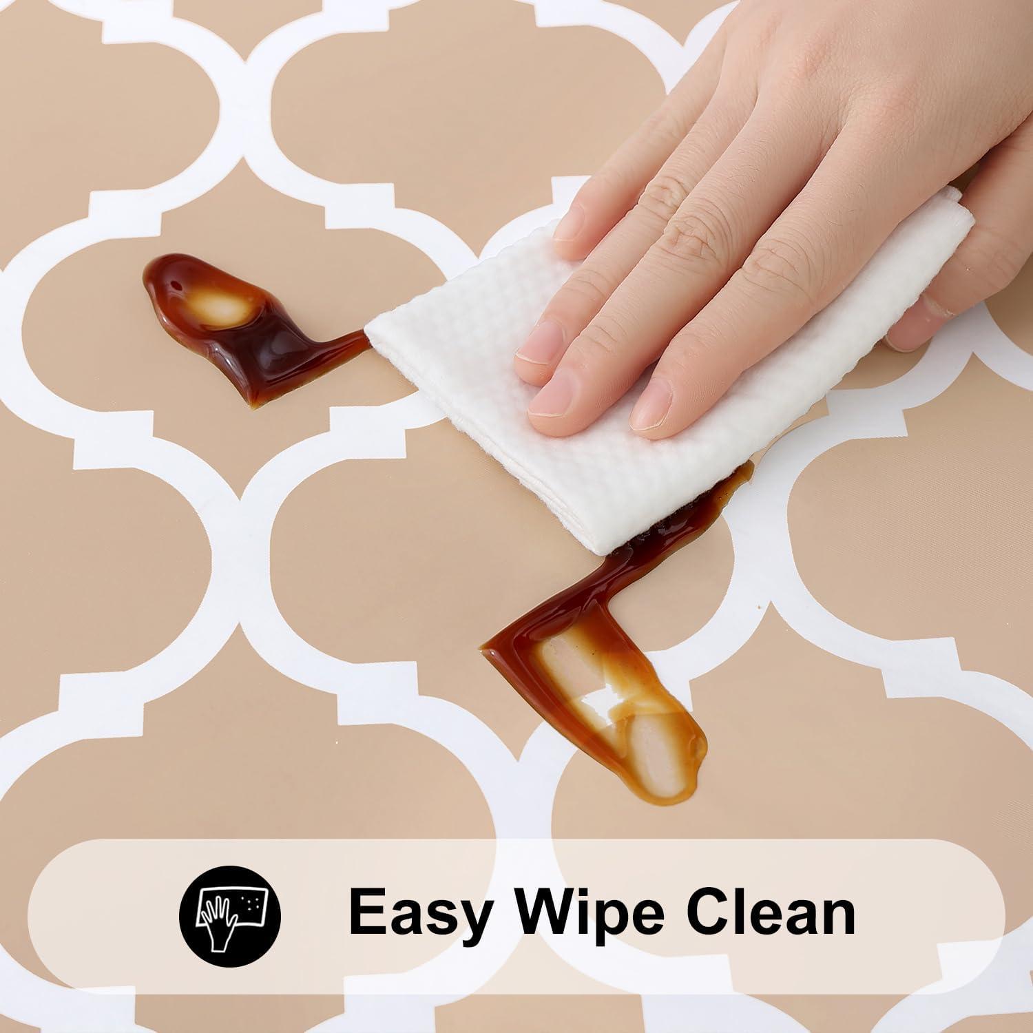 [Waterproof & Wipe Clean] Our table cover surface is made of selected vinyl material, which can effectively waterproof. Spill proof coating makes tablecloth easy to clean, just wipe it off with a damp sponge or rag in a minute.