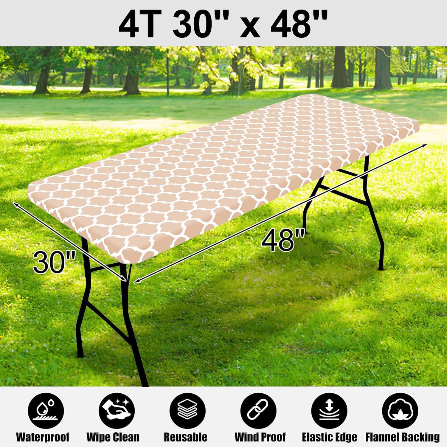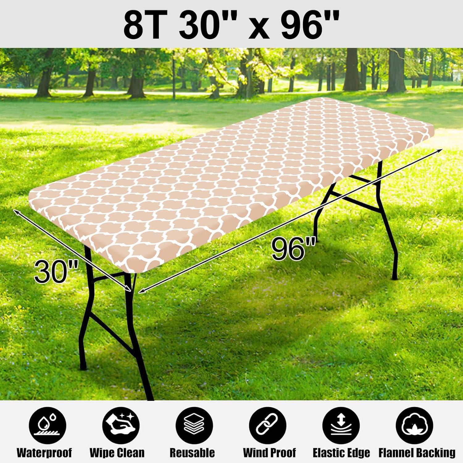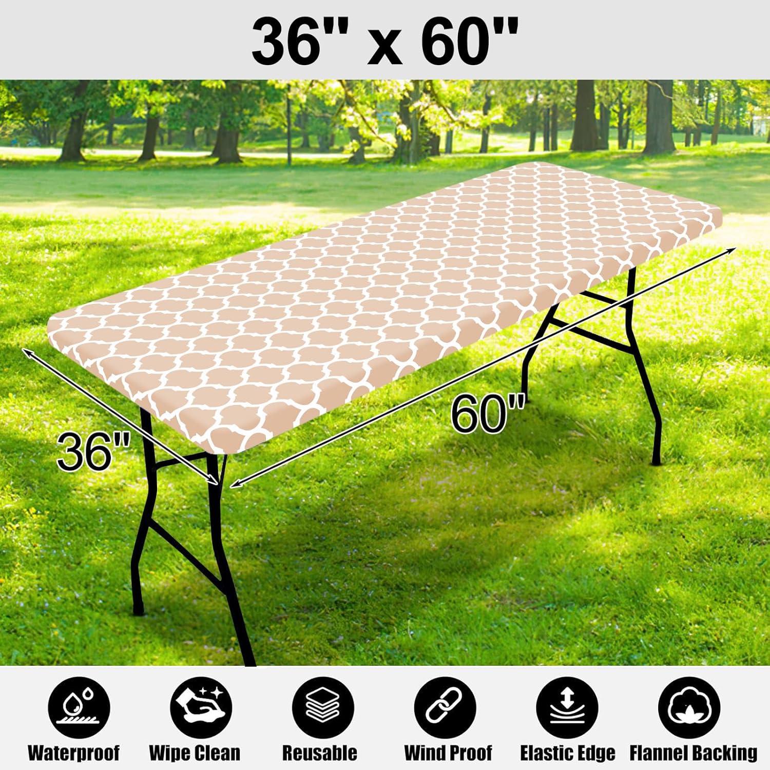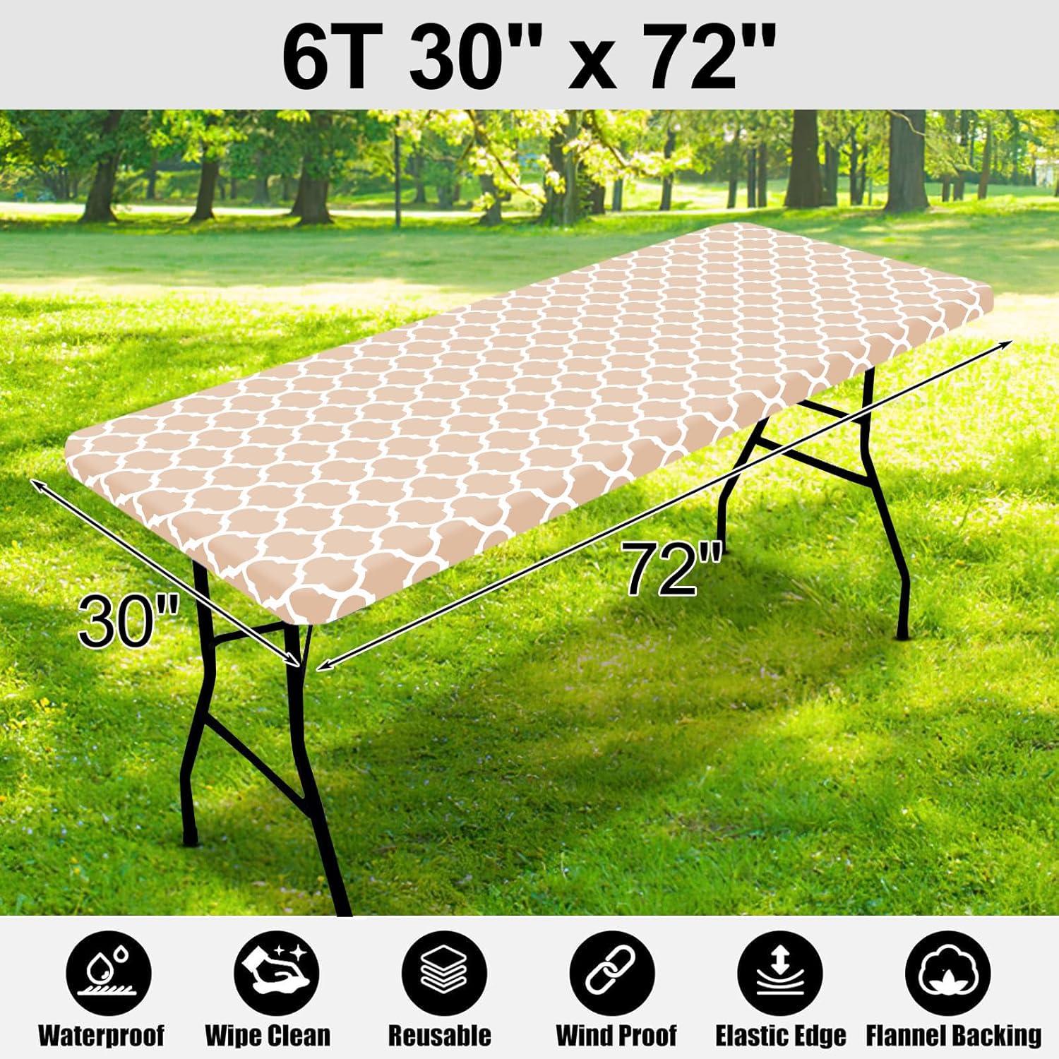 Smiry Rectangle Picnic Table Cover, Waterproof Elastic Fitted Camping Tablecloths for 6 Foot Tables, Wipeable Flannel Backed Vinyl Tablecloth Protector for Indoor, Outdoor (Khaki, 30x72 Inches)(Khaki)