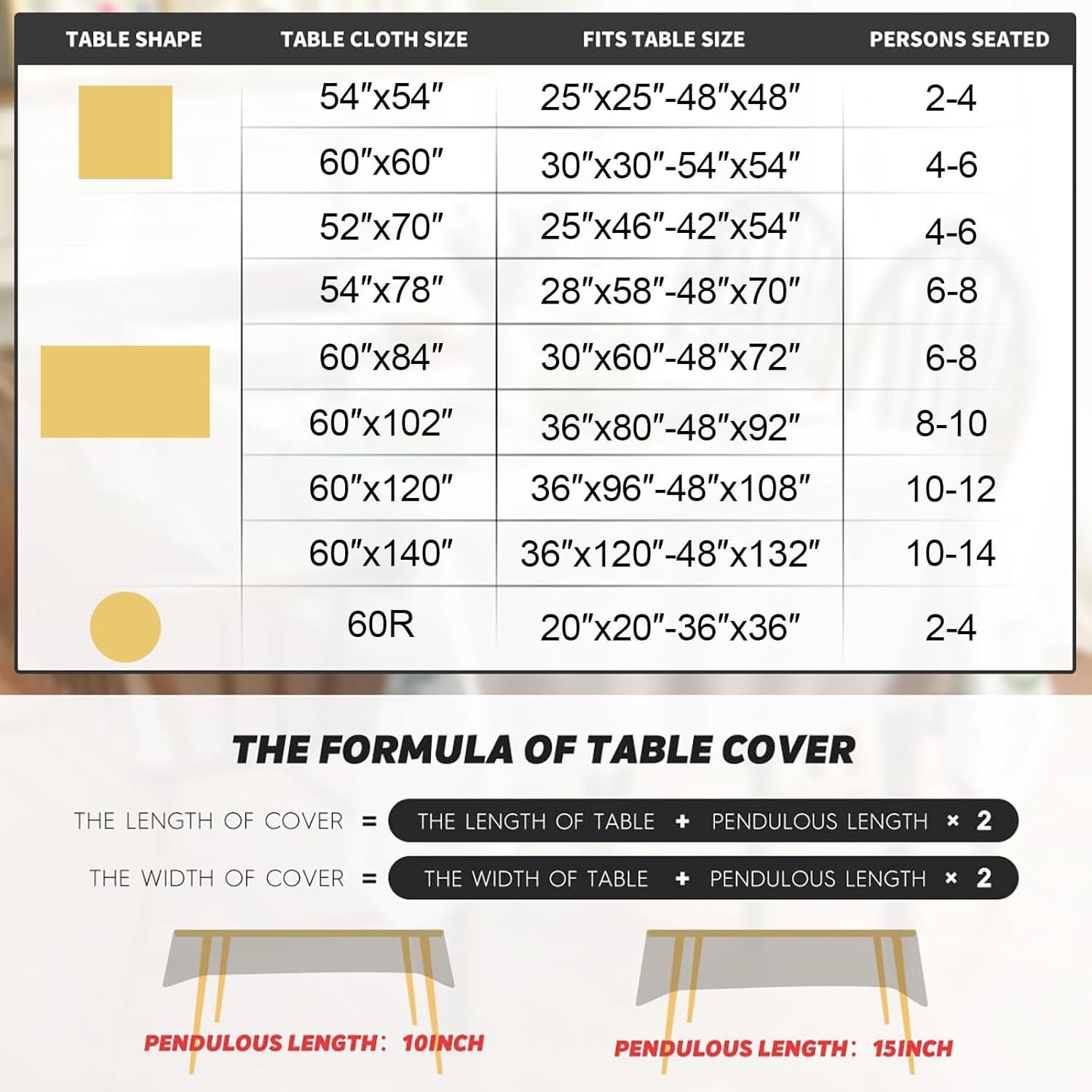 [Versatile & Elegant] The colors of our tablecloths are carefully design to blend perfectly with various decor styles. Suitable for both indoor and outdoor use, it's enhancing kitchens, living rooms, dining areas, parties, weddings, banquets, picnics, camping trips, autumn gatherings, harvest celebrations, farmhouse gatherings, and Thanksgiving.
