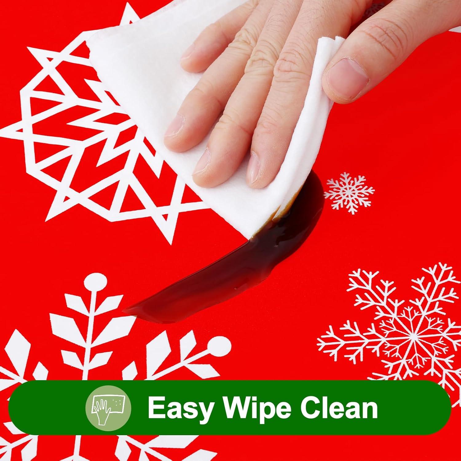 [Waterproof and Wipe Clean] The waterproof vinyl surfaces insulate our table cloths from water, milk, oil and other stains. Just rub with a damp cloth or sponge to remove the stain and look fresh.