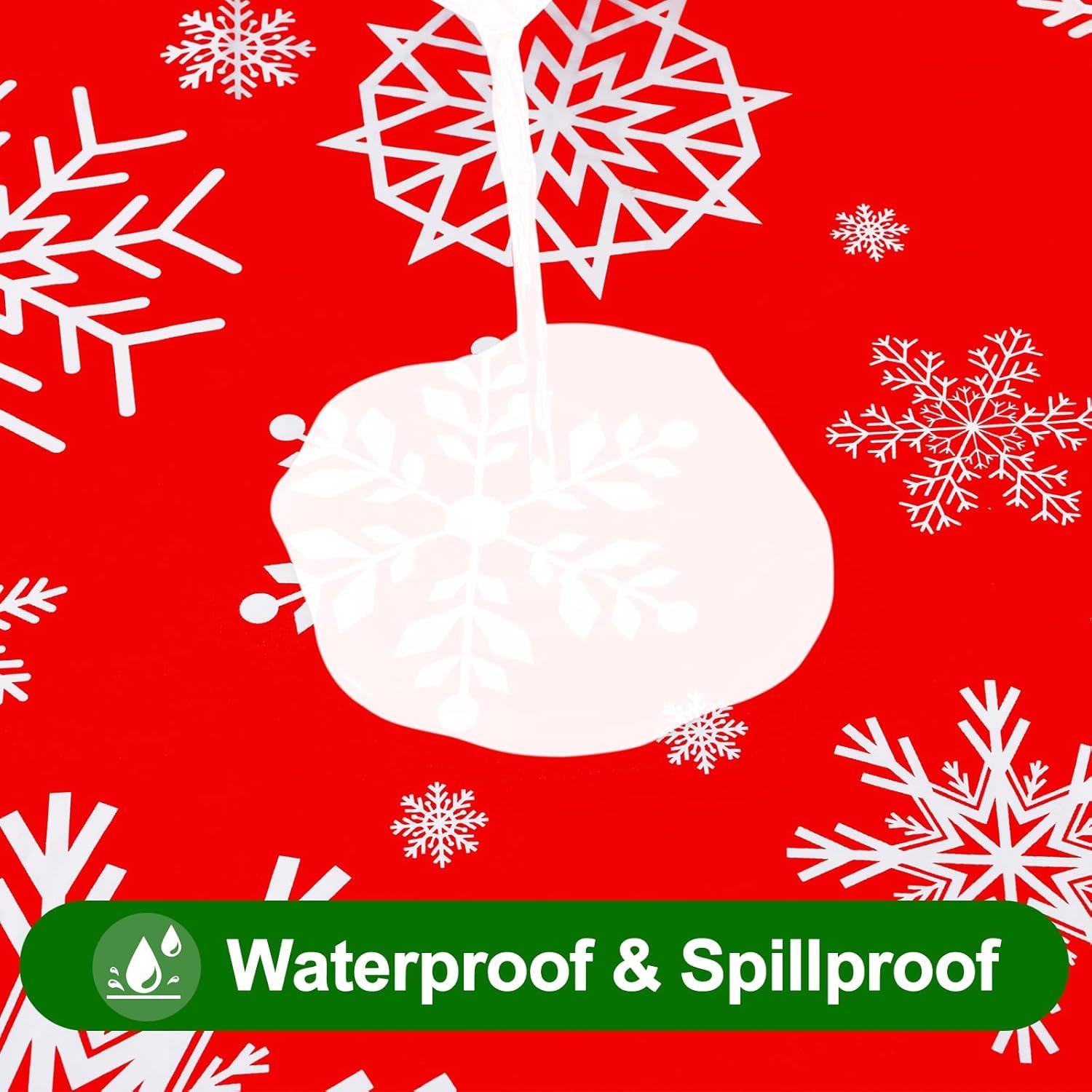 imageSmiry Rectangle Table Cloth Waterproof Vinyl Tablecloth with Flannel Backing for Rectangle Tables Wipeable Spillproof Plastic Tablecloths for Dining Camping Indoor and Outdoor 60quotx84quot BlackChristmas Red