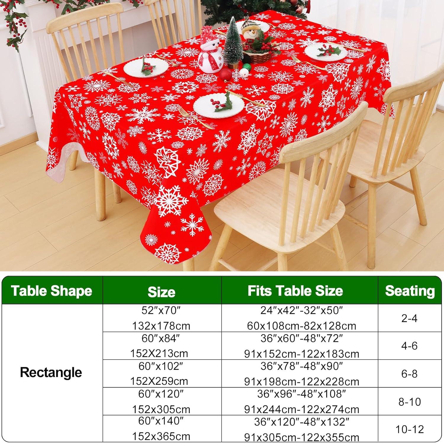 [Know Your Table Sizes] Smiry rectangle tablecloth measures 60 by 84 inches and fits rectangular tables measuring 36 x 60 inches to 48 x 72 inches, seating up to 6 to 8 adults. To purchase a more appropriate table cover, take a few seconds to measure your table before purchasing.