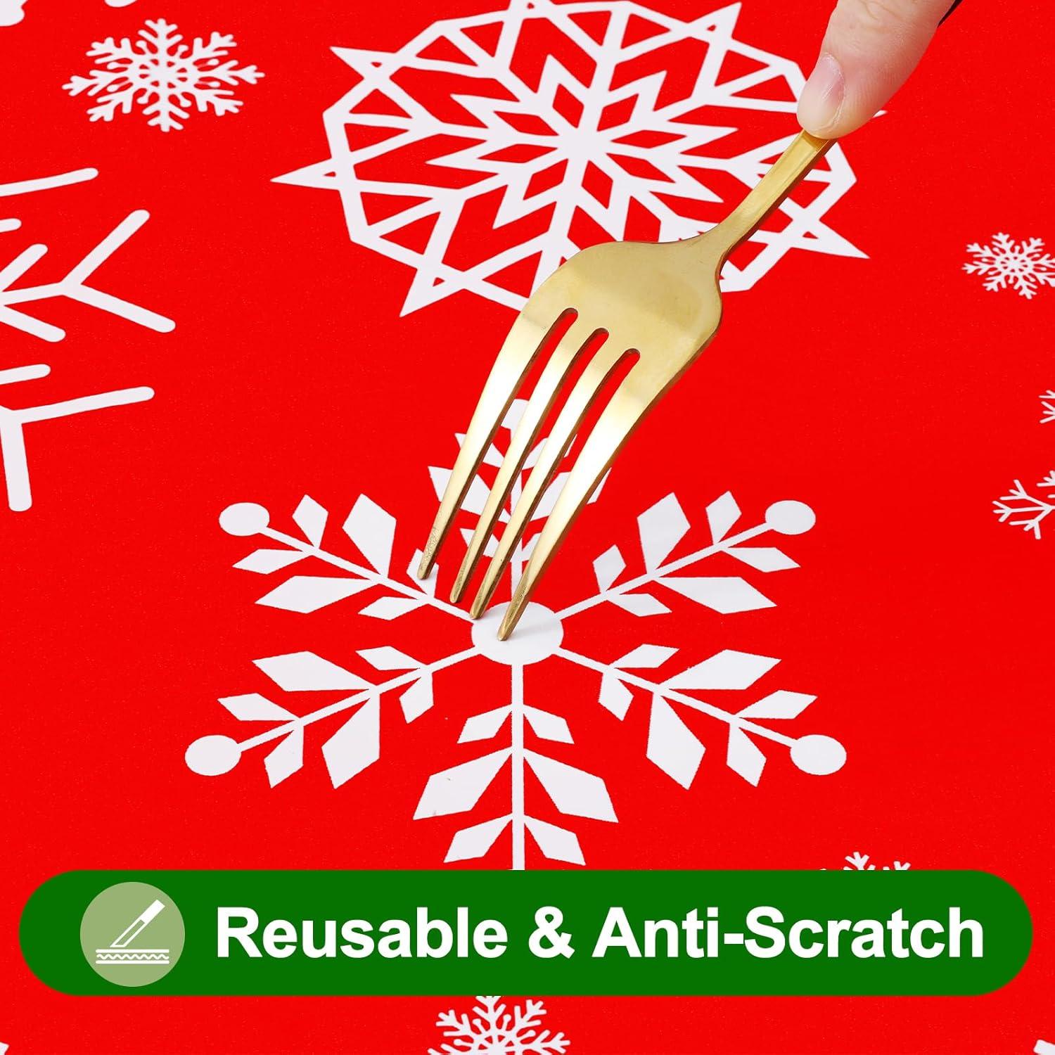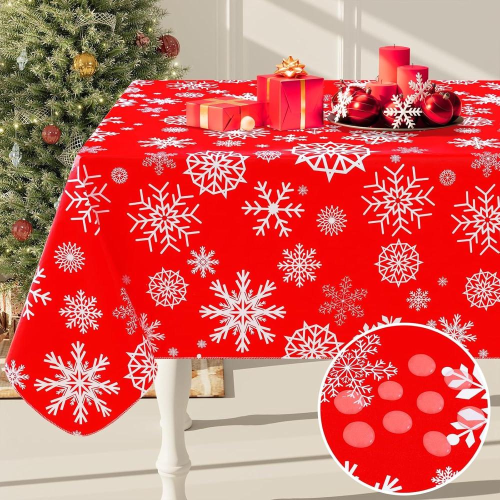 Smiry Rectangle Table Cloth, Waterproof Vinyl Tablecloth with Flannel Backing for Rectangle Tables, Wipeable Spillproof Plastic Tablecloths for Dining, Camping, Indoor and Outdoor 60″x84″, Black(Christmas Red)