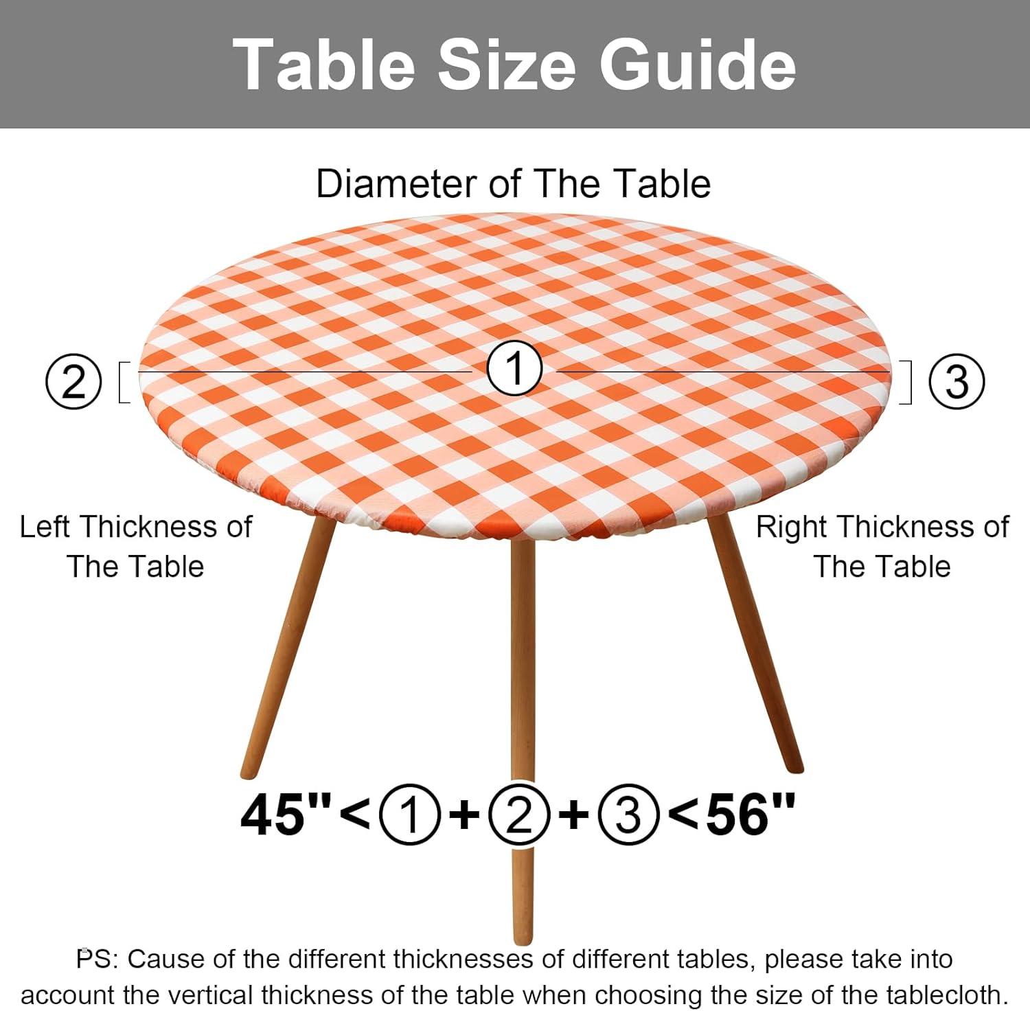 [Applicable Size] Our fitted tablecloths are suitable for 2 or 3 seats round tables with a diameter ranging from 36-44 inches and a thickness ranging from 1.7-2.3 inches. Please note confirm the size of your table before purchase