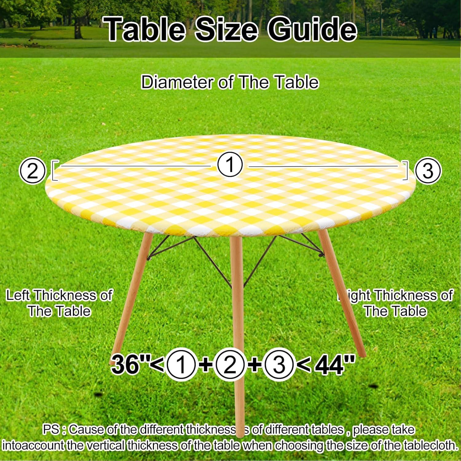 [Applicable Size] Our fitted tablecloths are suitable for 2 or 3 seats round tables with a diameter ranging from 36-44 inches and a thickness ranging from 1.7-2.3 inches. Please note confirm the size of your table before purchase
