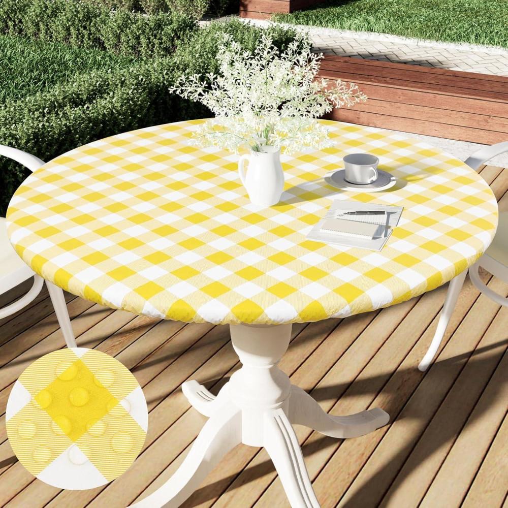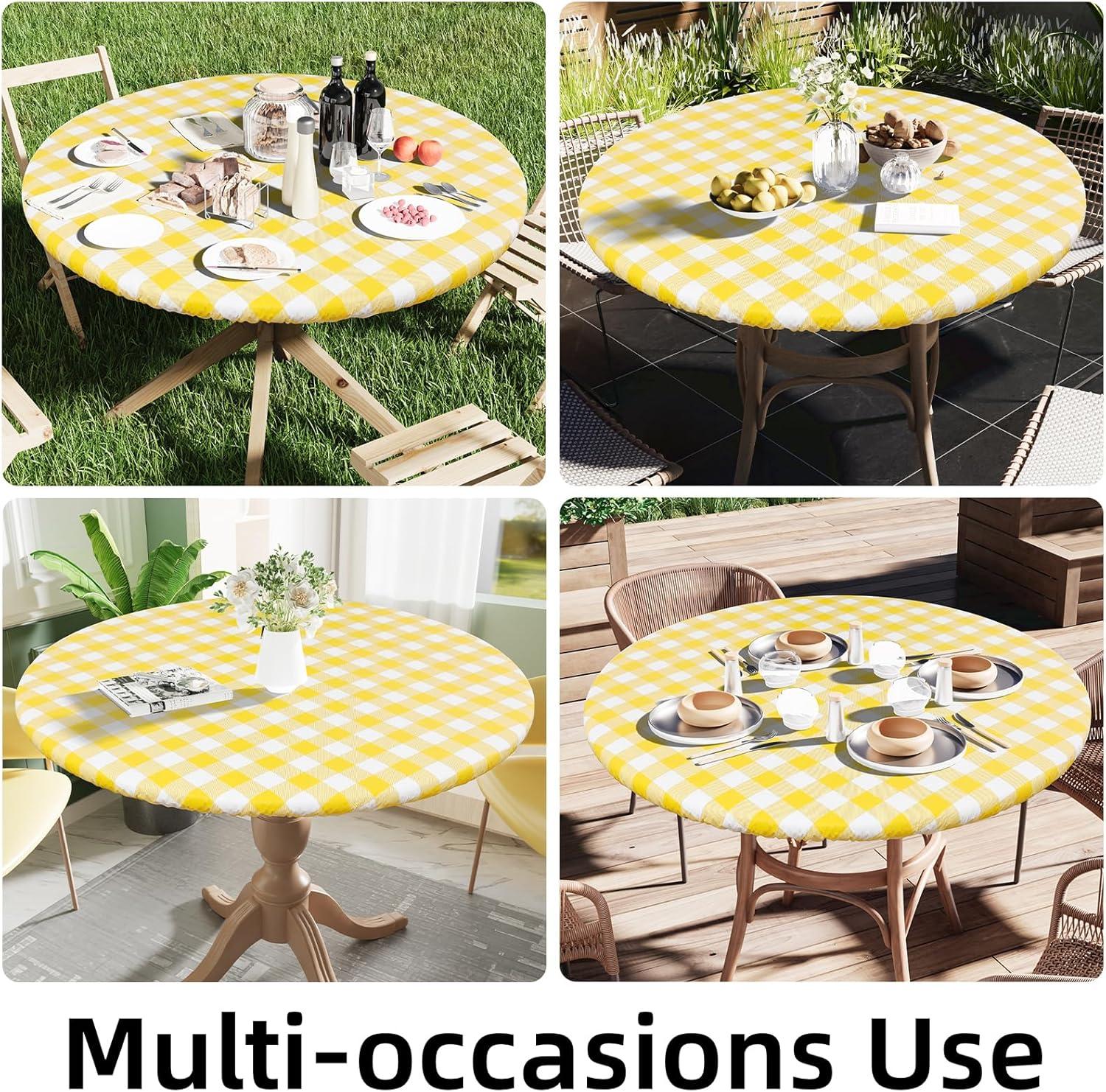 [Windproof & Non-Slip] Our table cloth designed with strong elastic edges design that holds it securely to the table even when it's windy outside. The fitted tablecloth won't slip and stays in place when people move and pull, to provide you with comfortable meal times experience in parties, picnics, camping, indoor or outdoors