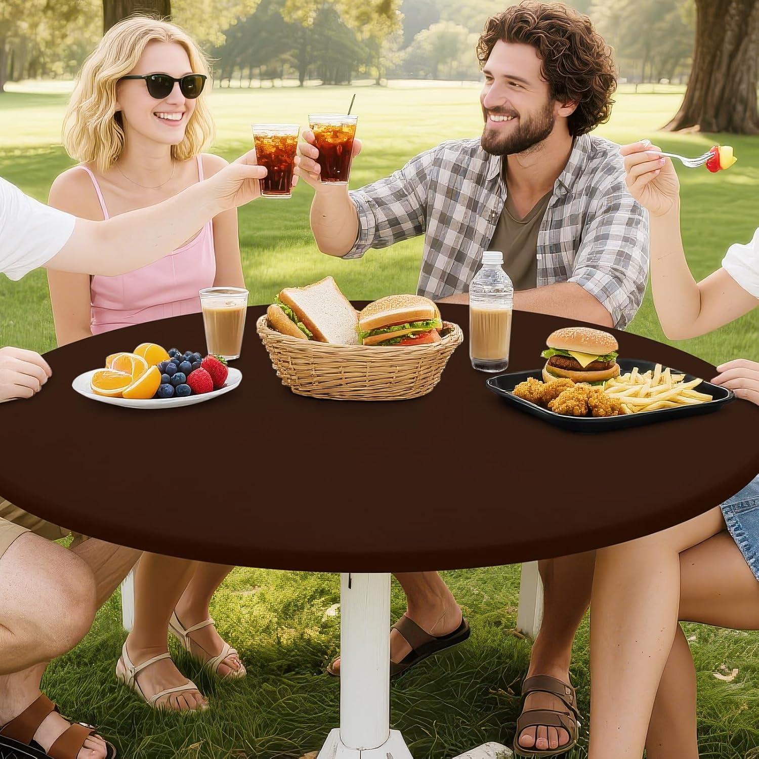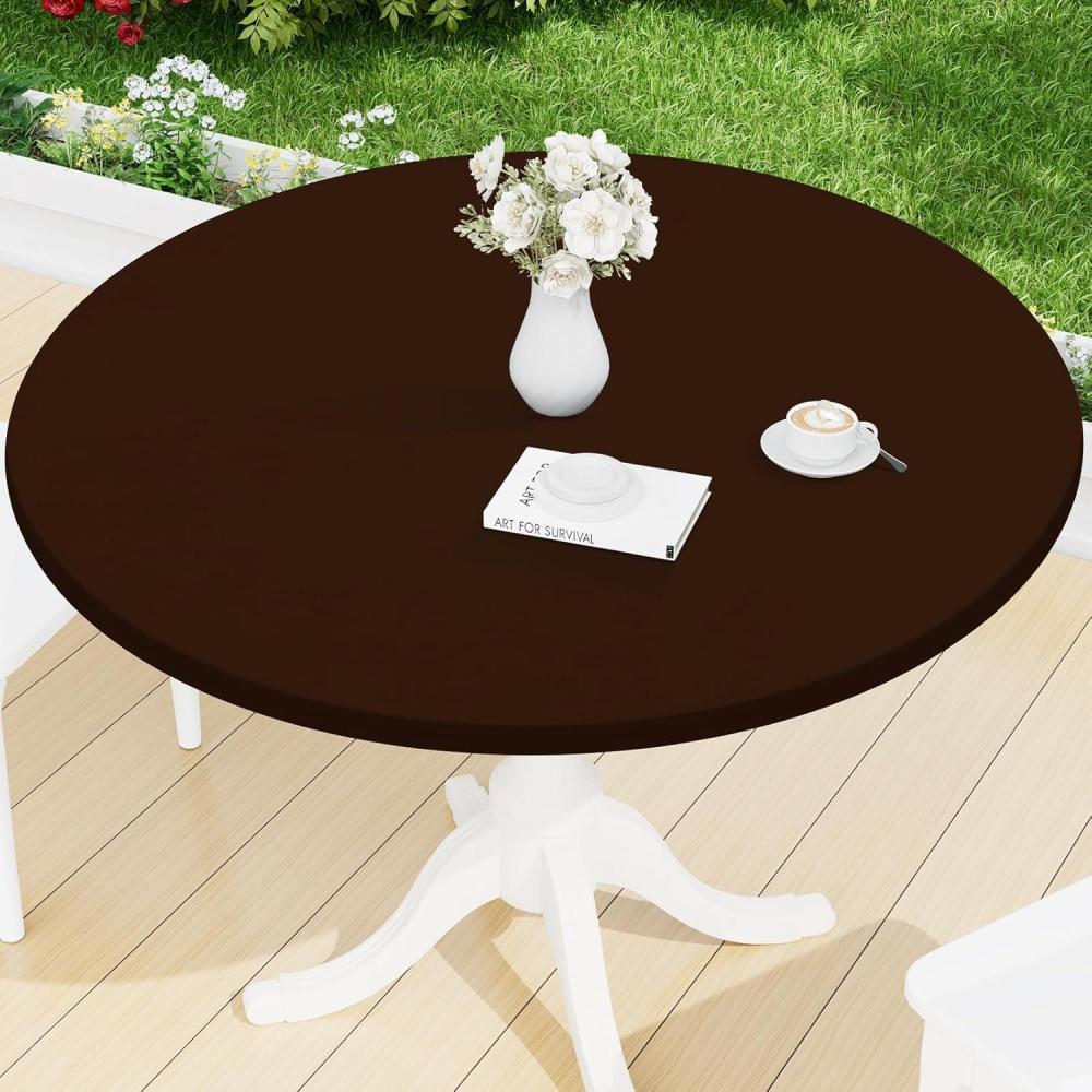 imageSmiry Round Spandex Tablecloth Elastic Fitted Washable Tablecloths for 36quot44quot Tables Waterpoof Stretch Picnic Table Cover for Dining Indoor and Outdoor BeigeCoffee