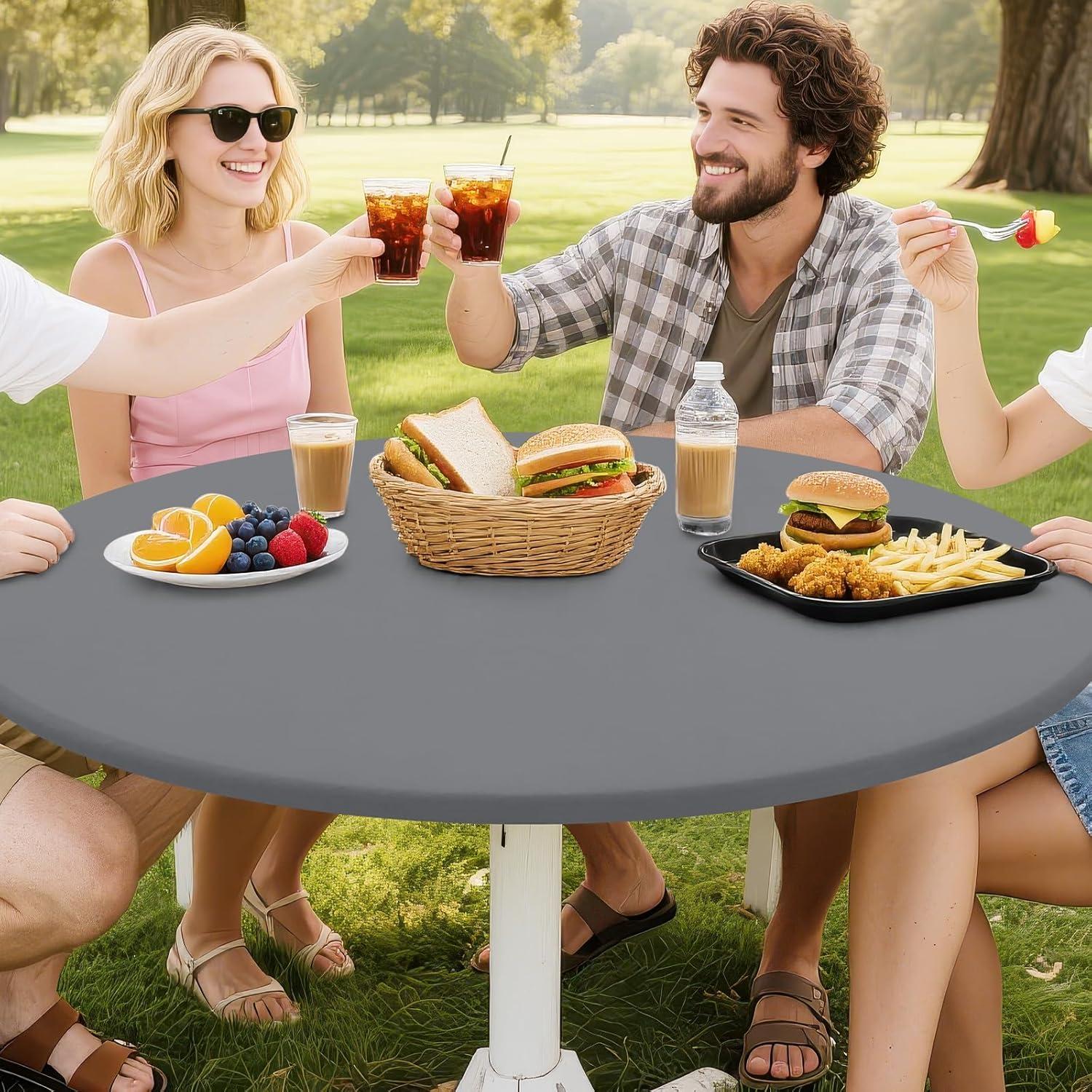 imageSmiry Round Spandex Tablecloth Elastic Fitted Washable Tablecloths for 36quot44quot Tables Waterpoof Stretch Picnic Table Cover for Dining Indoor and Outdoor BeigeGrey
