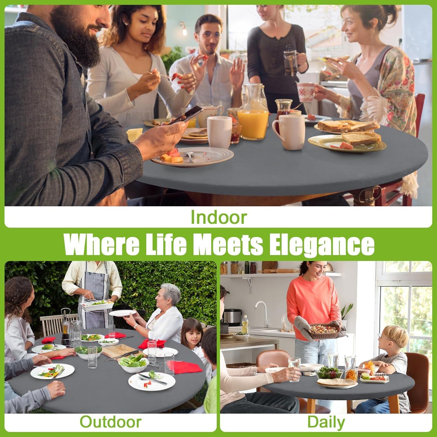 [Reusable & Tear Proof] Designed with sturdy construction, this elastic tablecloth is constructed to withstand regular wear and tear which combines practicality with elegance, making it ideal for both everyday use and special occasions.