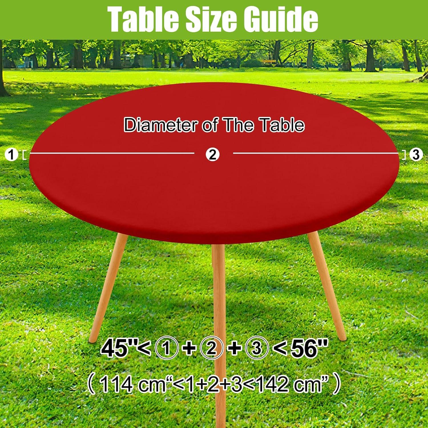Smiry Round Spandex Tablecloth, Elastic Fitted Washable Tablecloths for 36″-44″ Tables, Waterpoof Stretch Picnic Table Cover for Dining, Indoor and Outdoor, Beige(Red)