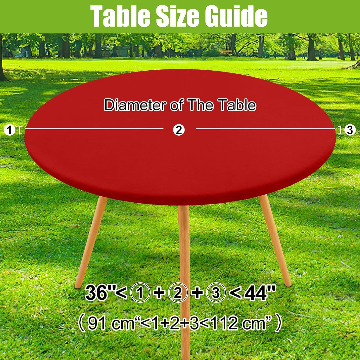 Smiry Round Spandex Tablecloth, Elastic Fitted Washable Tablecloths for 36"-44" Tables, Waterpoof Stretch Picnic Table Cover for Dining, Indoor and Outdoor, Beige(Red)