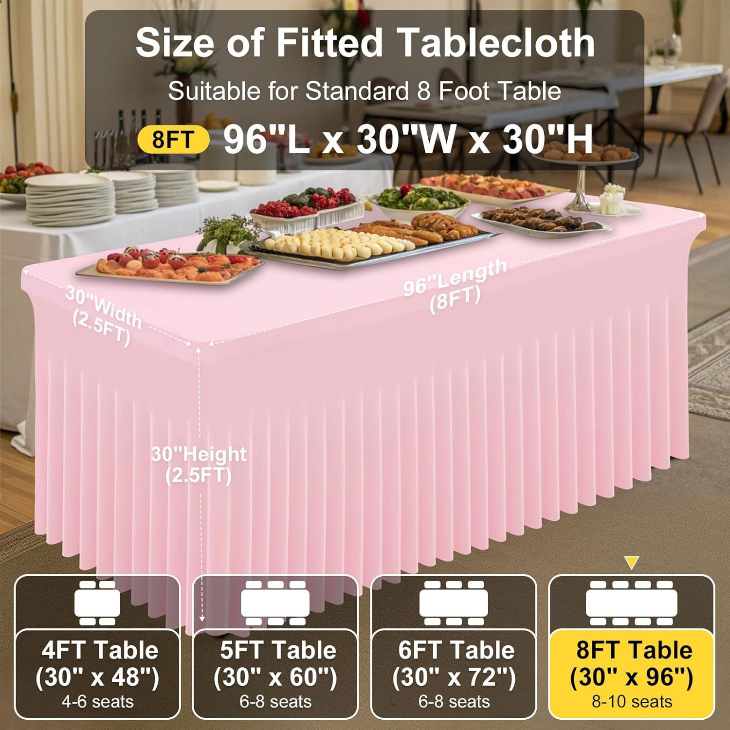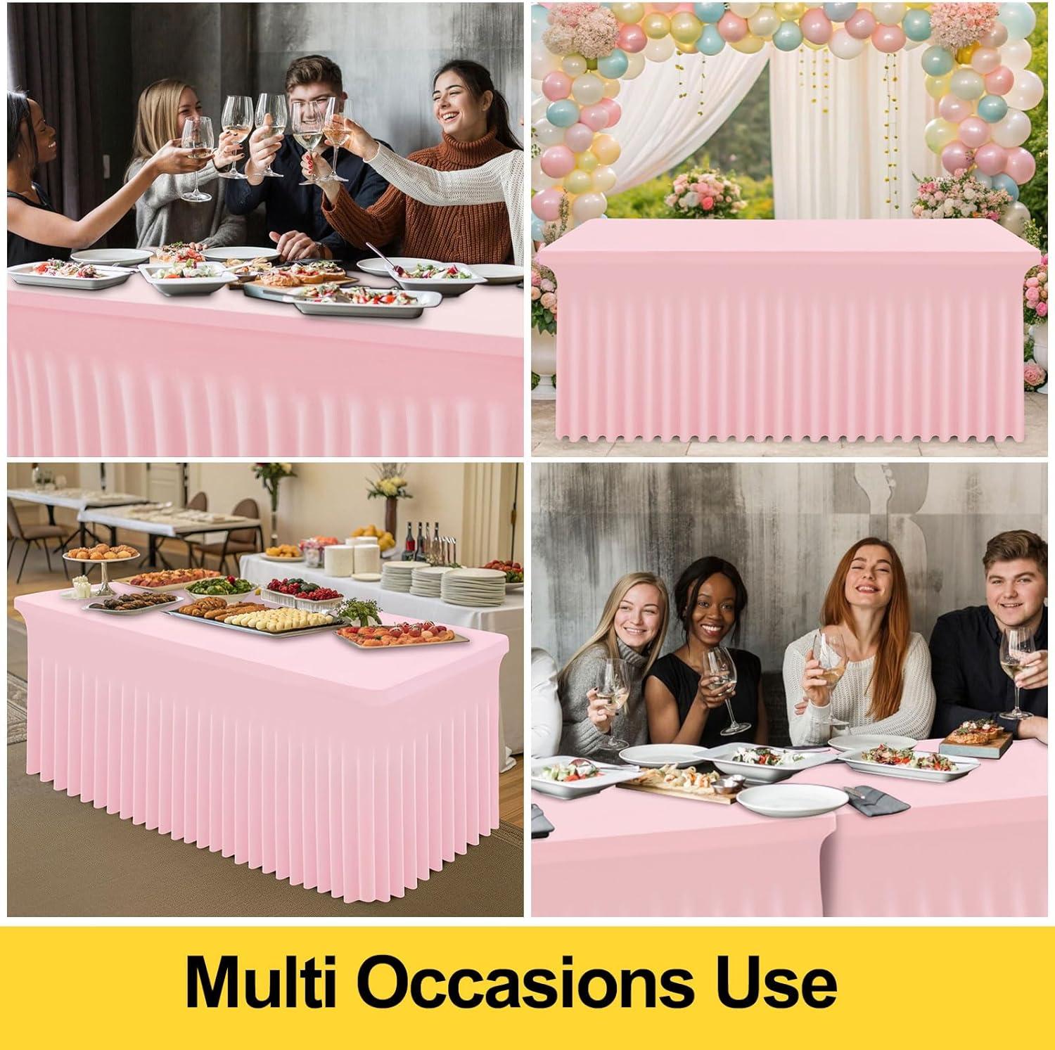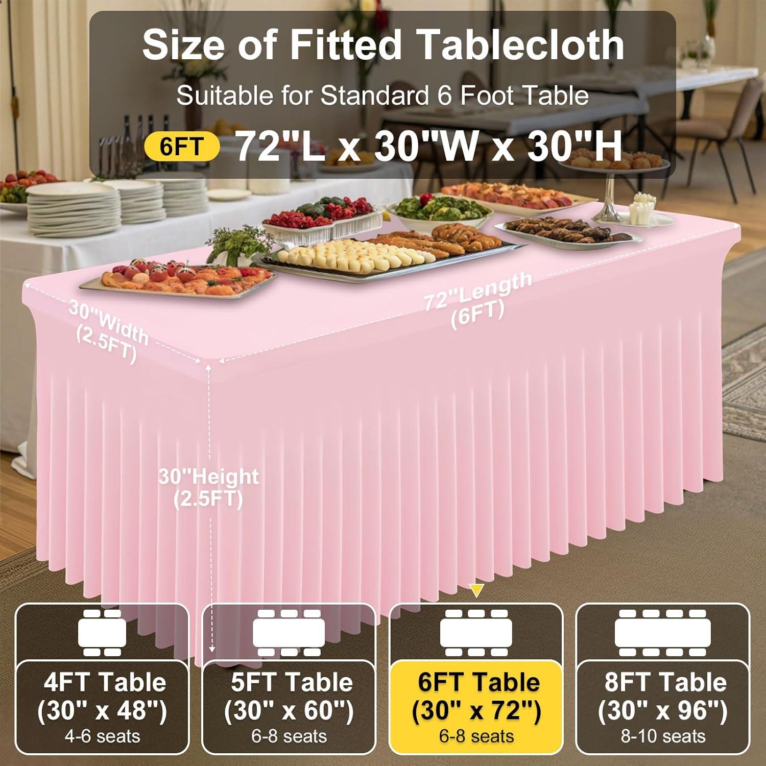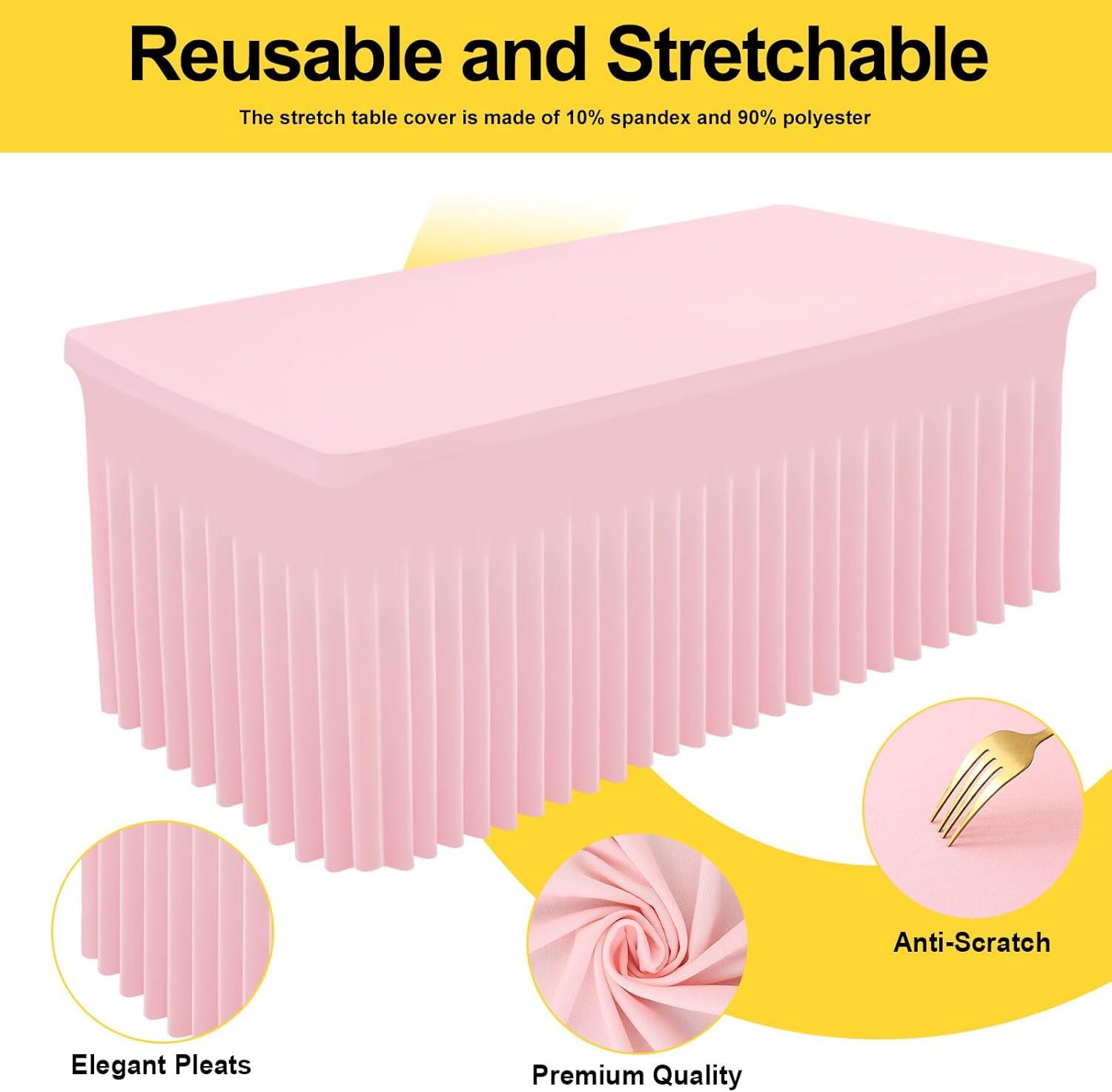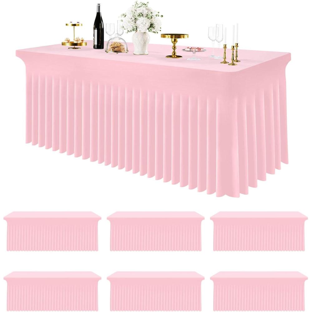 Smiry Spandex Tablecloth 6 Pack, Elastic Fitted Stretch Tablecloth for 6FT Rectangle Tables, Waterproof Washable Table Cover Skirt for Wedding, Banquet & Parties (Black, 72Lx30Wx30H Inch)(Pink)