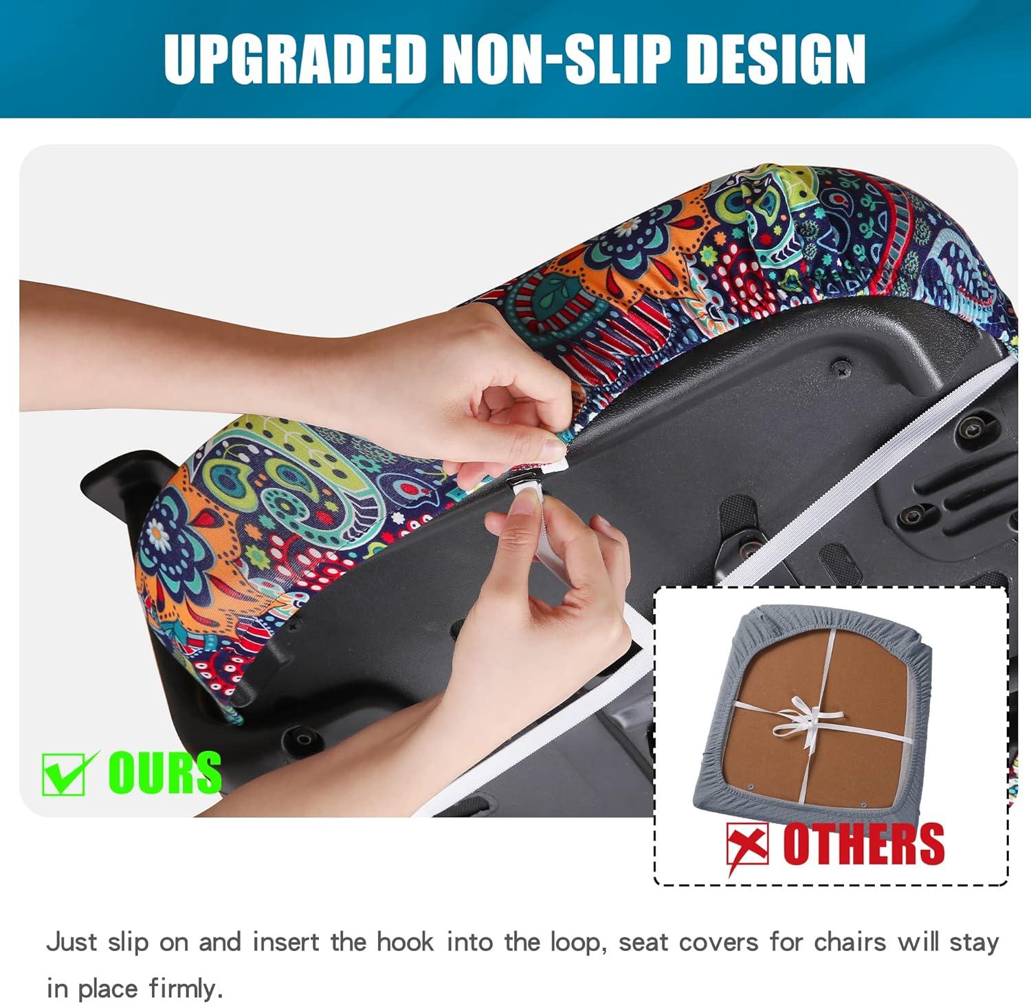 Upgraded Non-Slip Design: This stretchy desk chair cover is equipped with elastic band with hook for faster install and anti-slip. Just slip on and simply pass the straps through the bottom of the chair and hook the hook into the loop, seat covers for chairs will stay in place firmly