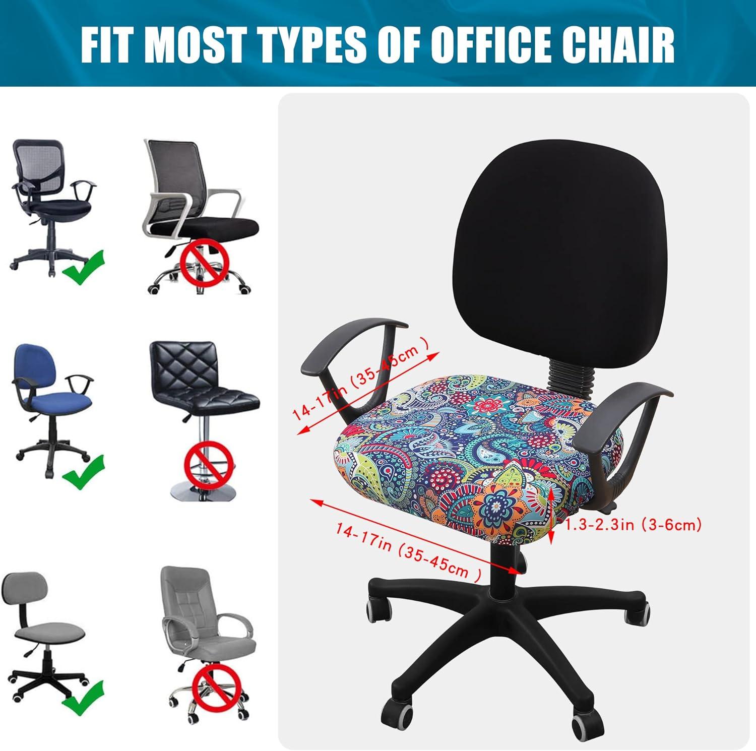 Decorate & Protect: This computer chair cover comes in various prints with modern style for you to choose from. Stylish chair cover give your office chair a new look if your chair is a little torn or peeling. It can prevent dulling and damage from dust, stains, daily tear and scratch