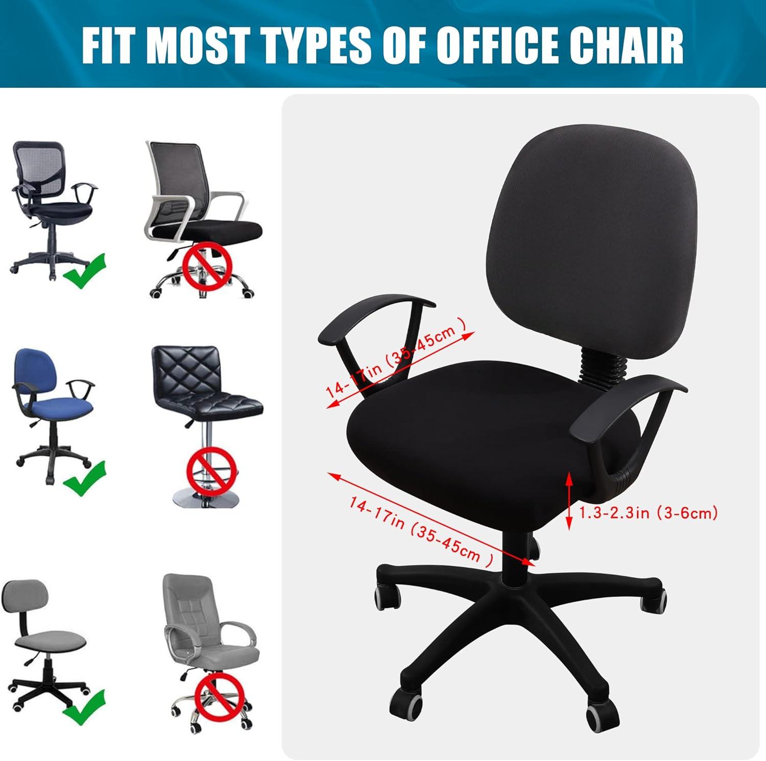 Material: Made of 92% polyester and 8% spandex, stretches to fit most office chairs easily. Equipped with elastic band, easy to fit and anti-slip, wrinkle resistance and reusable.
