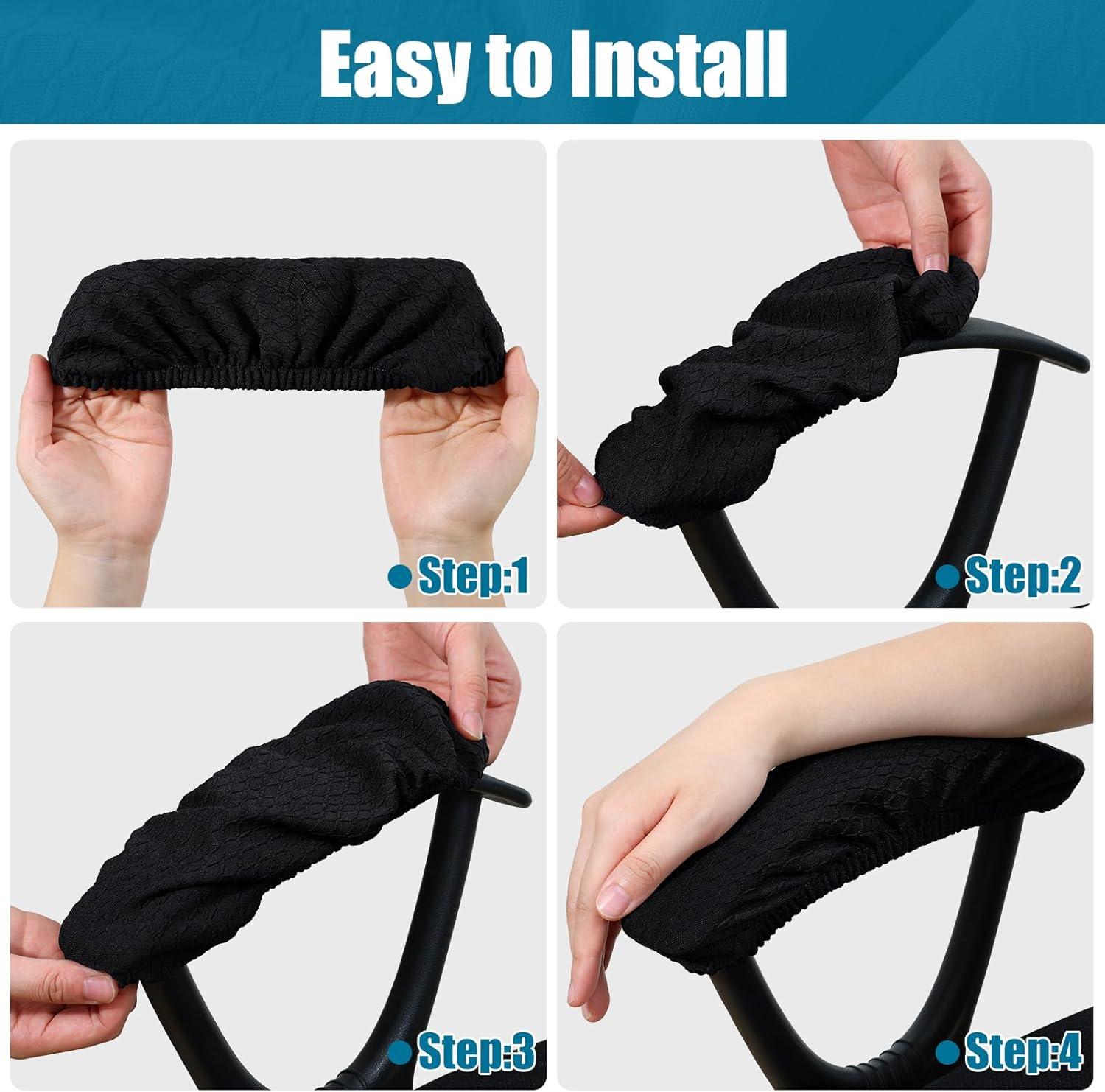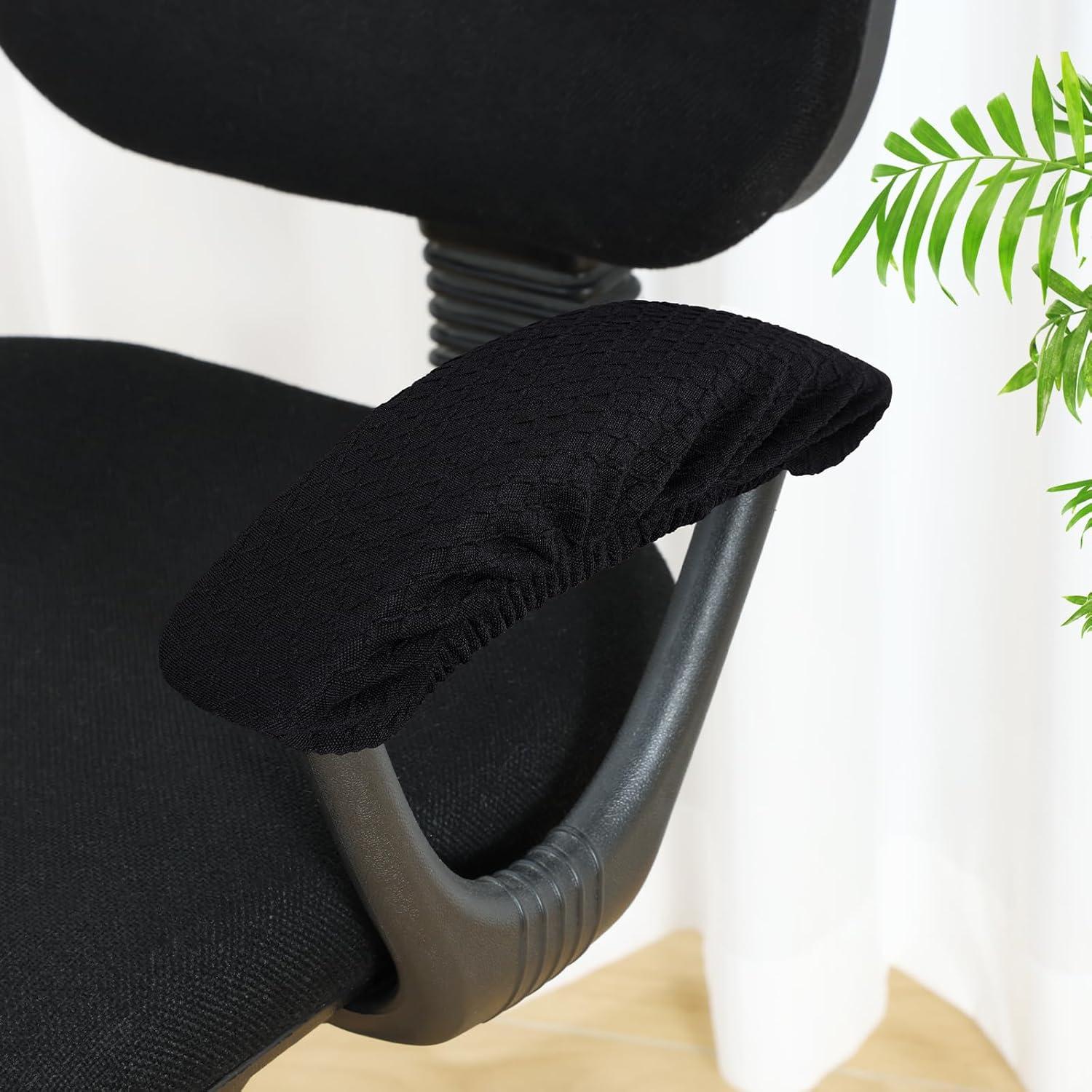 Smiry Stretch Jacquard Office Computer Chair Seat Covers, Chair Seat Cover+Chair Armrest Covers, Black