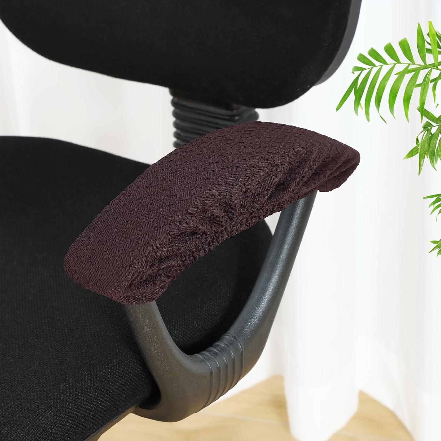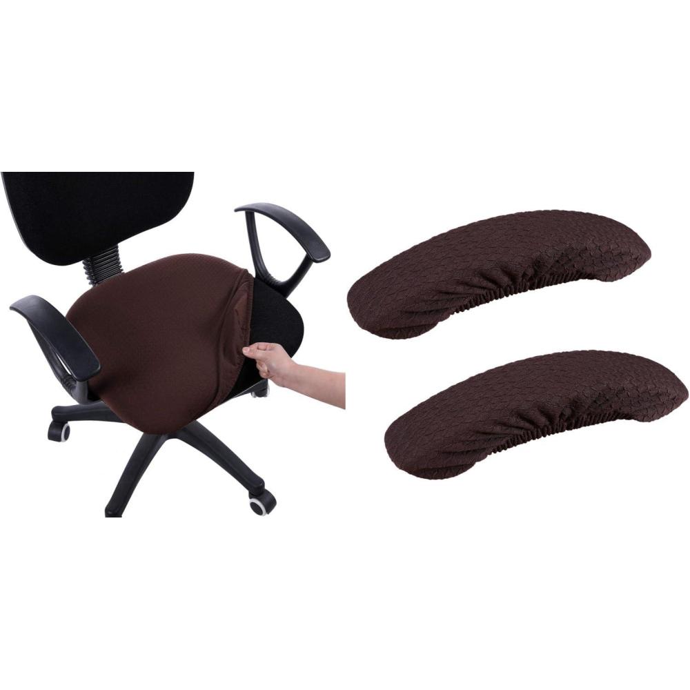 Smiry Stretch Jacquard Office Computer Chair Seat Covers, Chair Seat Cover+Chair Armrest Covers, Chocolate