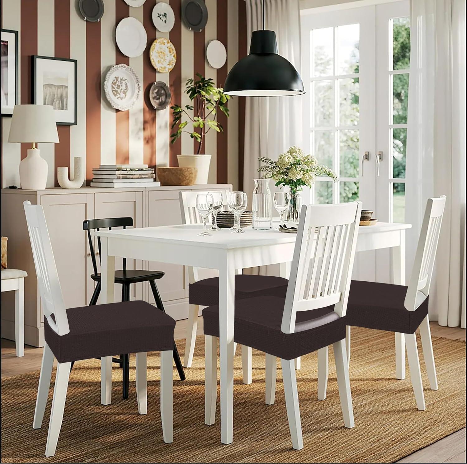 imageSmiry Stretch Jacquard Seat Covers for Dining Room Chairs Set of 6 Removable Washable Chair Seat Protector Slipcovers No Rear Covers RustBrown