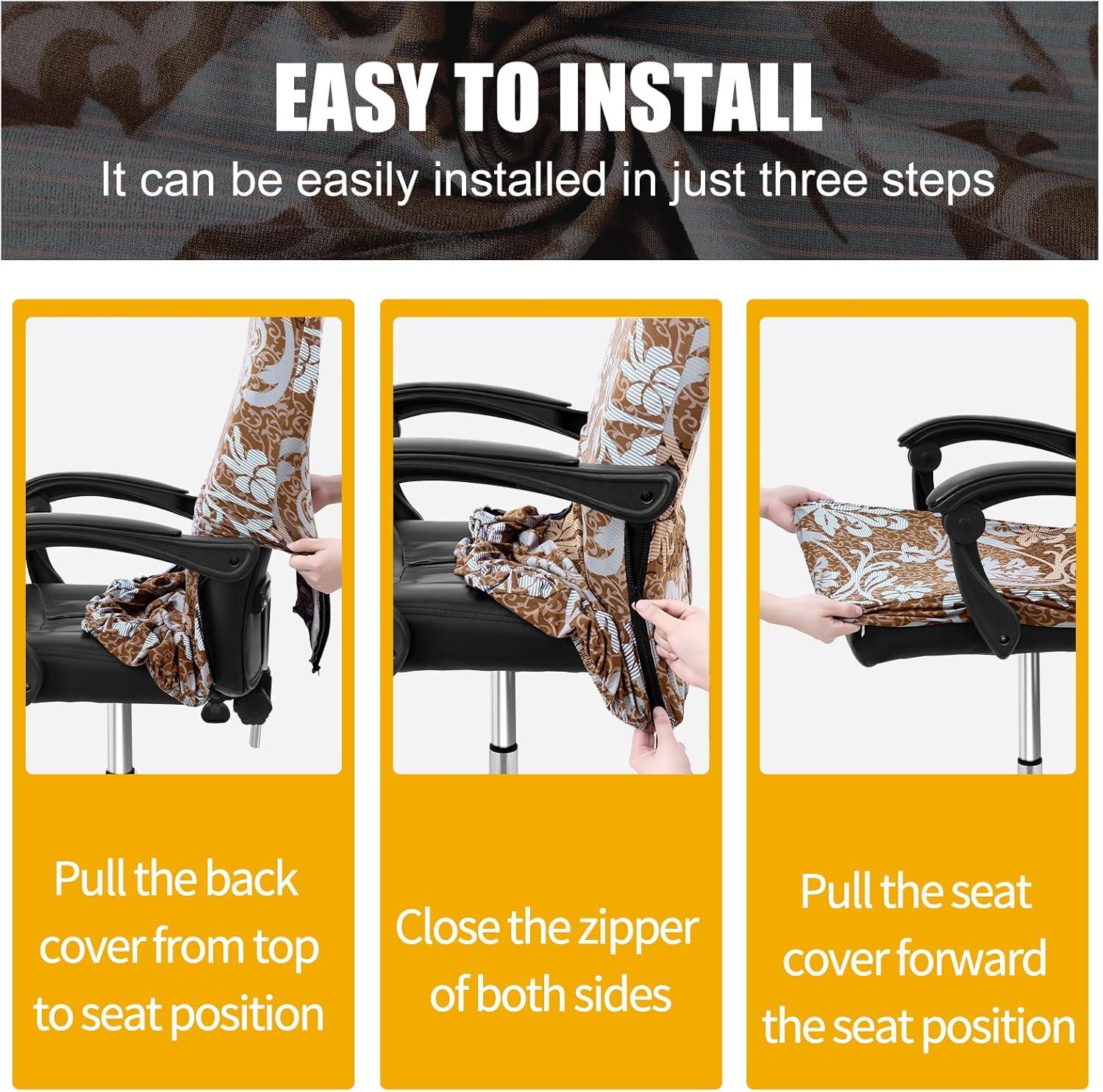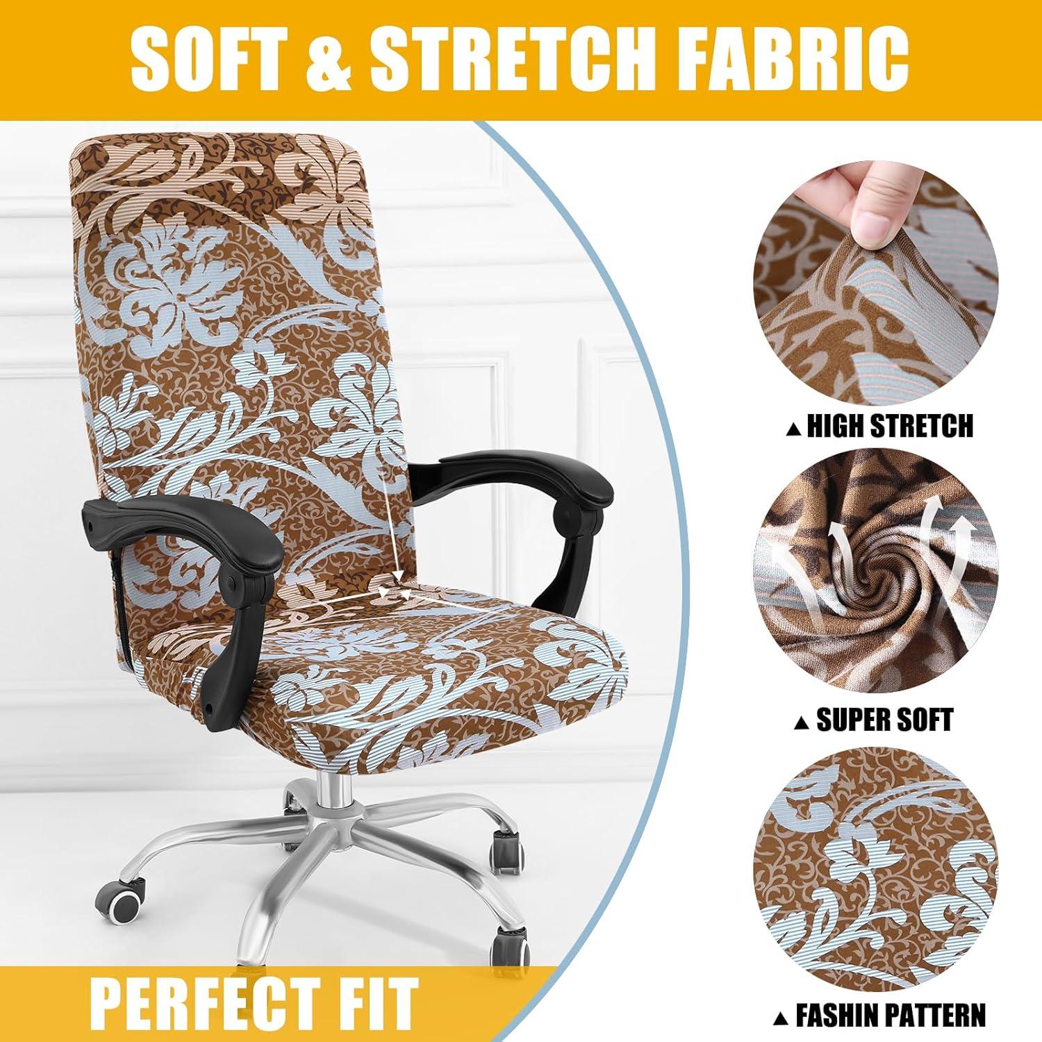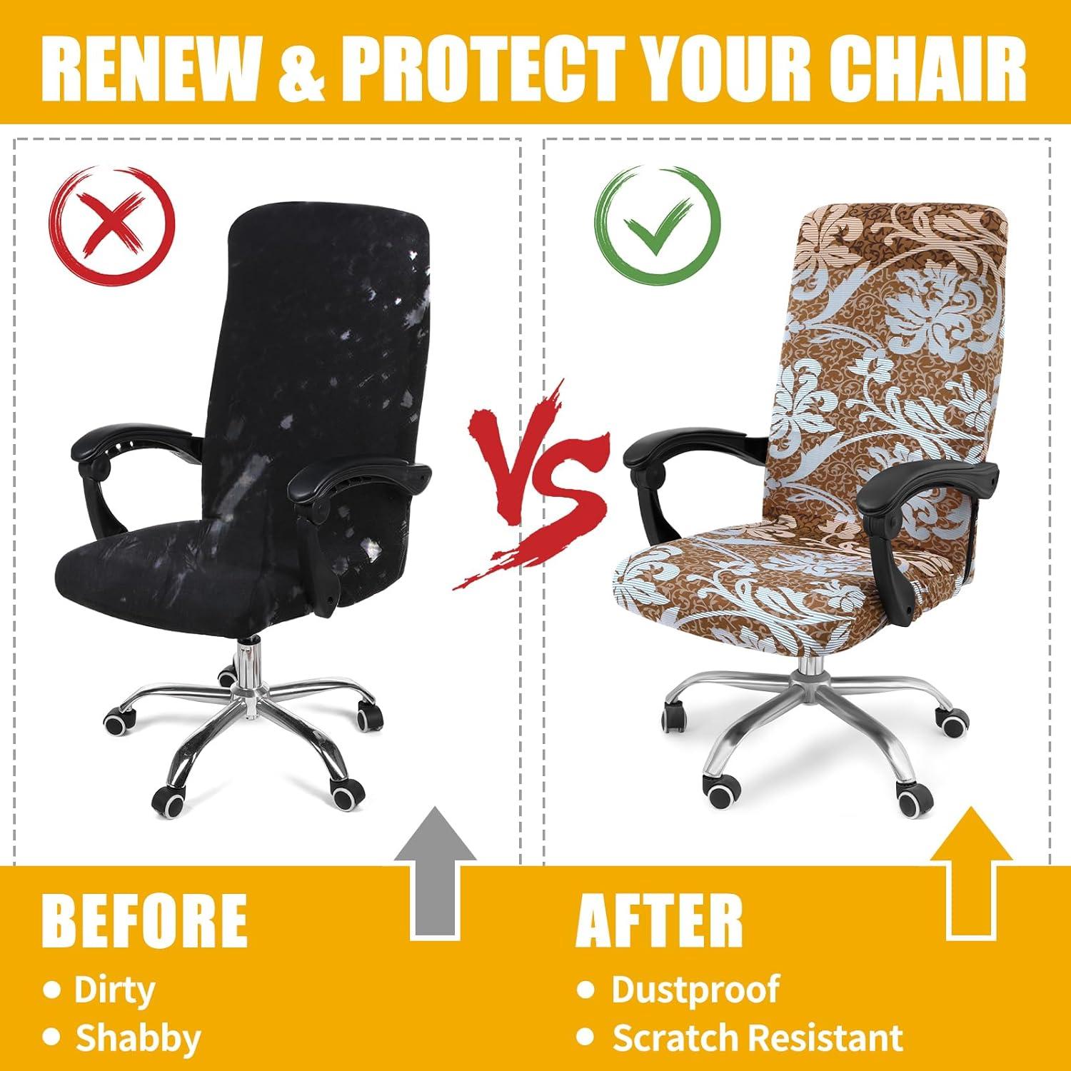 SOFT STRETCH MATERIAL – Smiry office chair covers are made of 95% polyester and 5% spandex fabric, soft and comfortable, sturdy and long lasting. High elastic fit to protect your chair from spills, stains and tearing perfectly.
