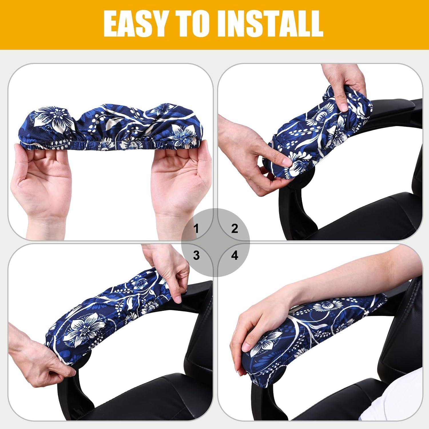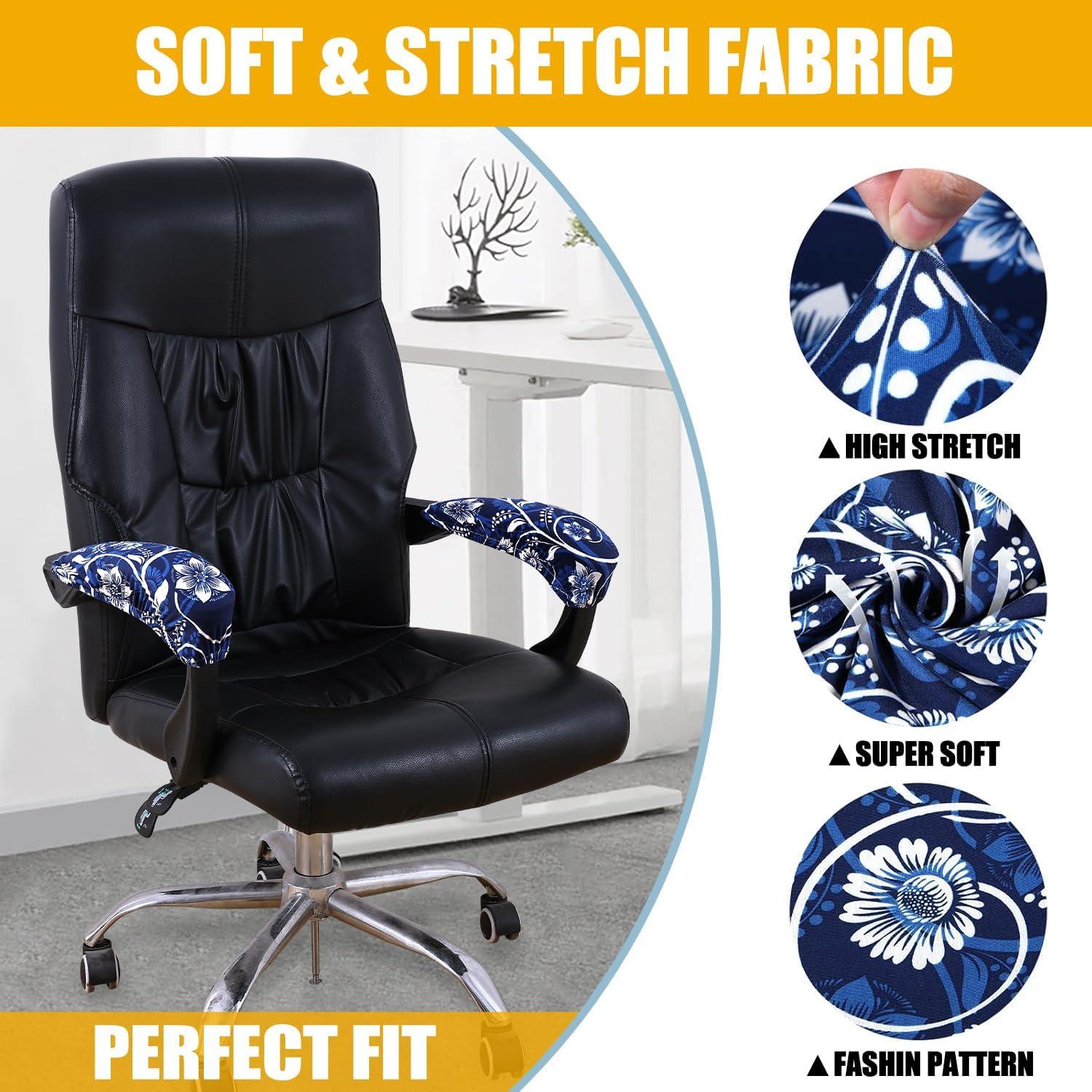 Smiry Stretch Printed Office Chair Armrest Covers, 2 Pcs Soft Fit Removable Washable Computer Desk Chair Arm Covers Protector, Blue Green(Navy Blue)