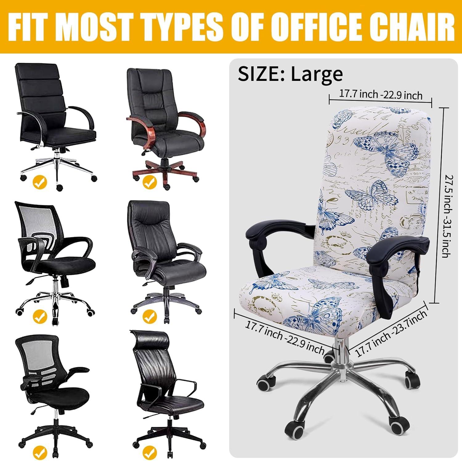 SUITABLE FOR CHAIR SIZE – Printed office chair slipcovers will fit chair back's height: 27.5-31.5 inches, chair back's width: 17.7-22.8 inches, chair seat length: 17.7-22.8 inches, chair seat width: 17.7-23.19 inches. Please refer to the measuring guide in pictures to measure your office chair size.
