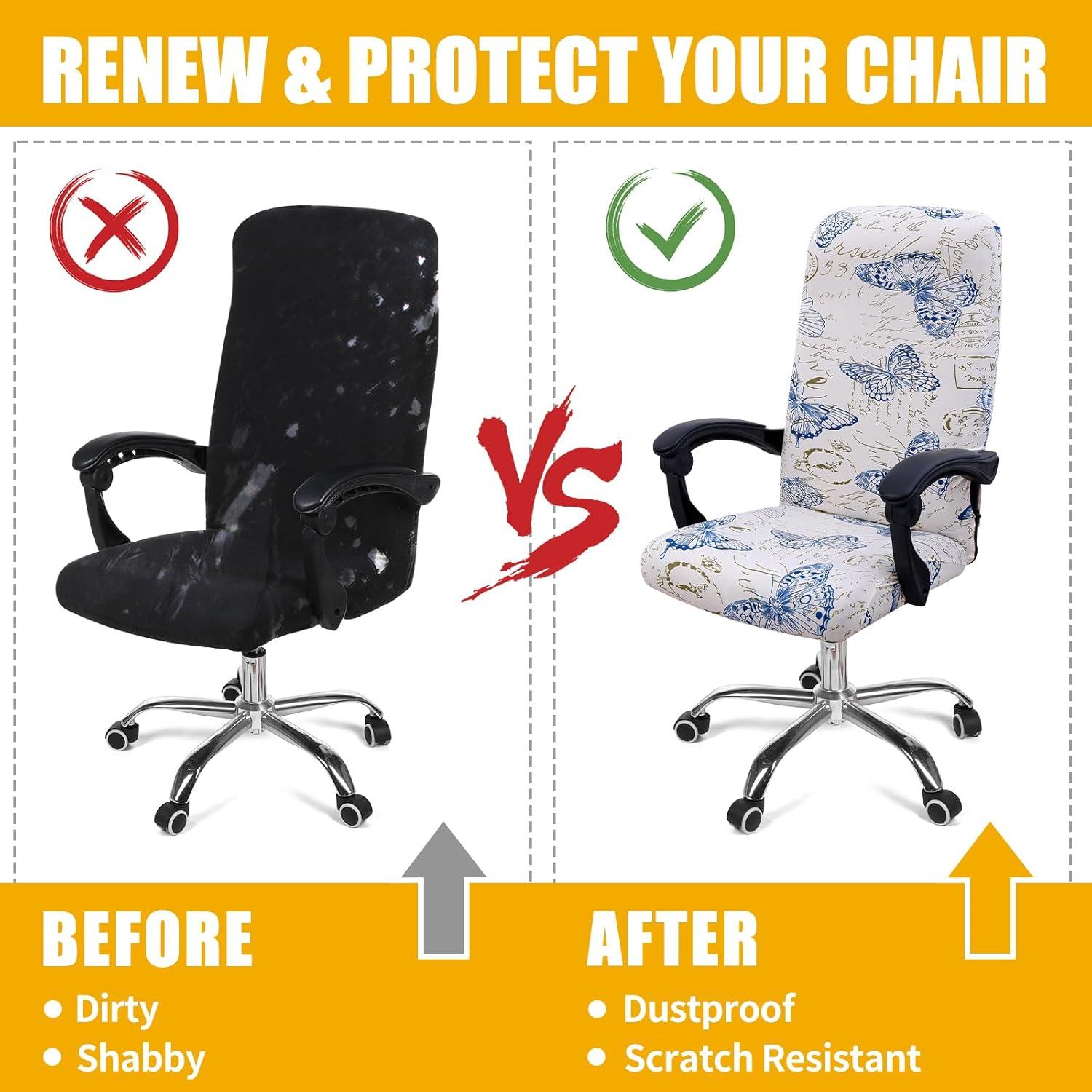 SOFT STRETCH MATERIAL – Smiry office chair covers are made of 95% polyester and 5% spandex fabric, soft and comfortable, sturdy and long lasting. High elastic fit to protect your chair from spills, stains and tearing perfectly.