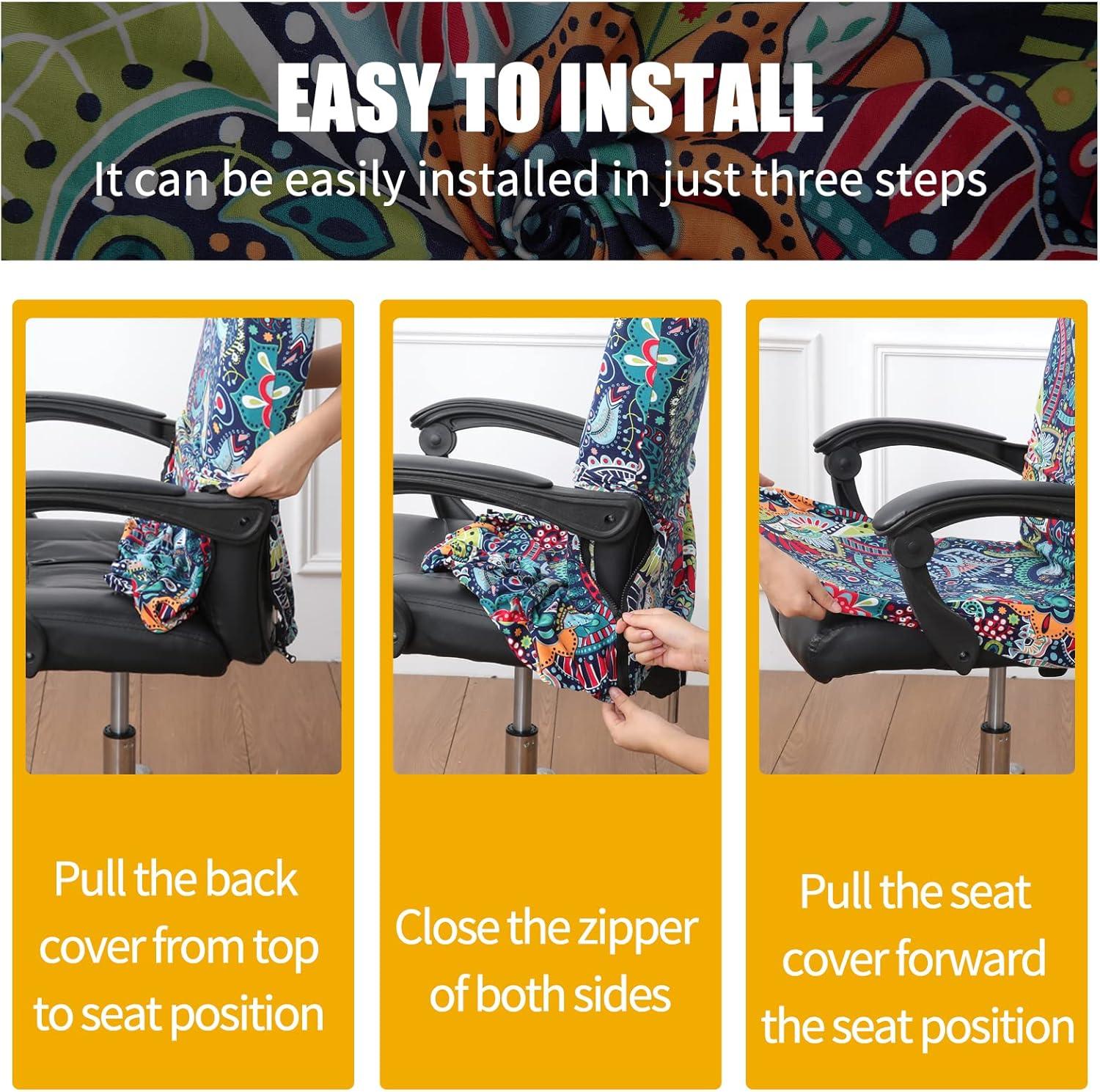 SUITABLE FOR CHAIR SIZE – Printed office chair slipcovers will fit chair back's height: 27.5-31.5 inches, chair back's width: 17.7-22.8 inches, chair seat length: 17.7-22.8 inches, chair seat width: 17.7-23.7 inches. Please refer to the measuring guide in pictures to measure your office chair size.