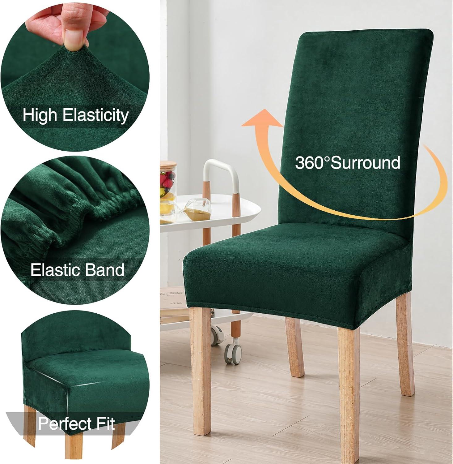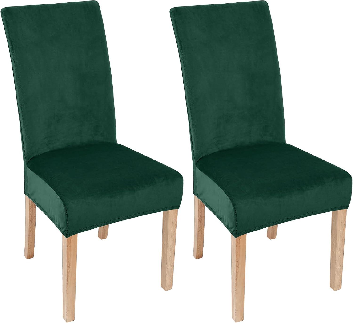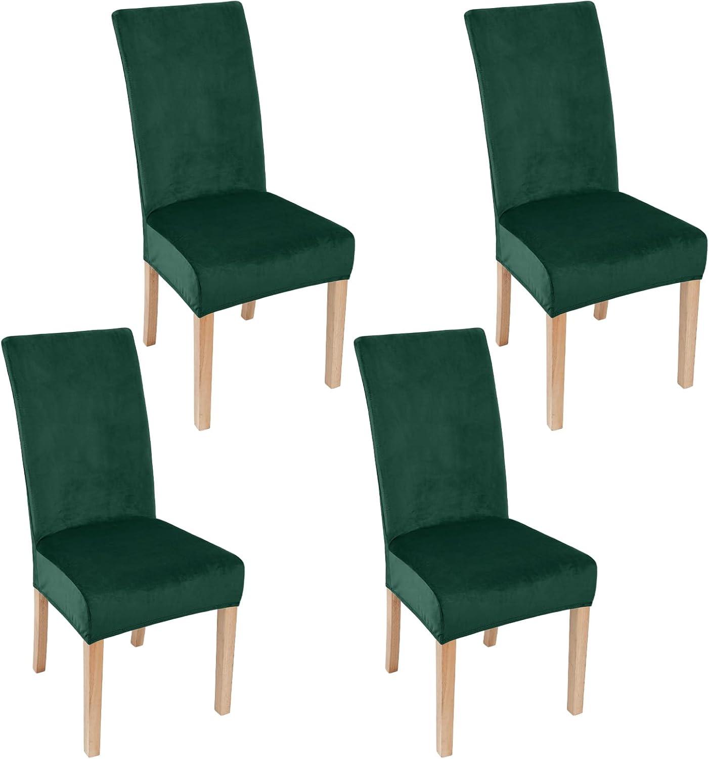 Smiry Velvet Stretch Chair Covers for Dining Room Set of 4, Soft Fit Removable Washable Kitchen Parsons Chair Slipcover Protector, Dark Green(Dark Green)