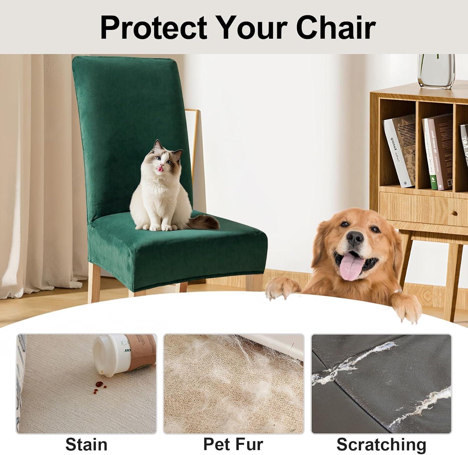[Chair Protector] Velvet chair covers for dining chairs dress up and create a new look to your old dining room chairs. Protect furniture chair from stain, dust, daily wears and scratch. Suitable for families with kids and pets