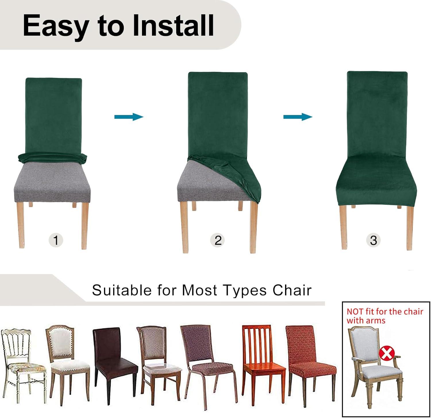 [Perfect Fit] Stretchable thick material velvet chair cover with sewn-in elastic hem ensures the dining chair covers fit securely on your chair, very easy to put on and take off. It covers the chair from the backrest to the seat, fit perfectly on most armless chairs and stay up. ♥NOT Fit for the chair with arms