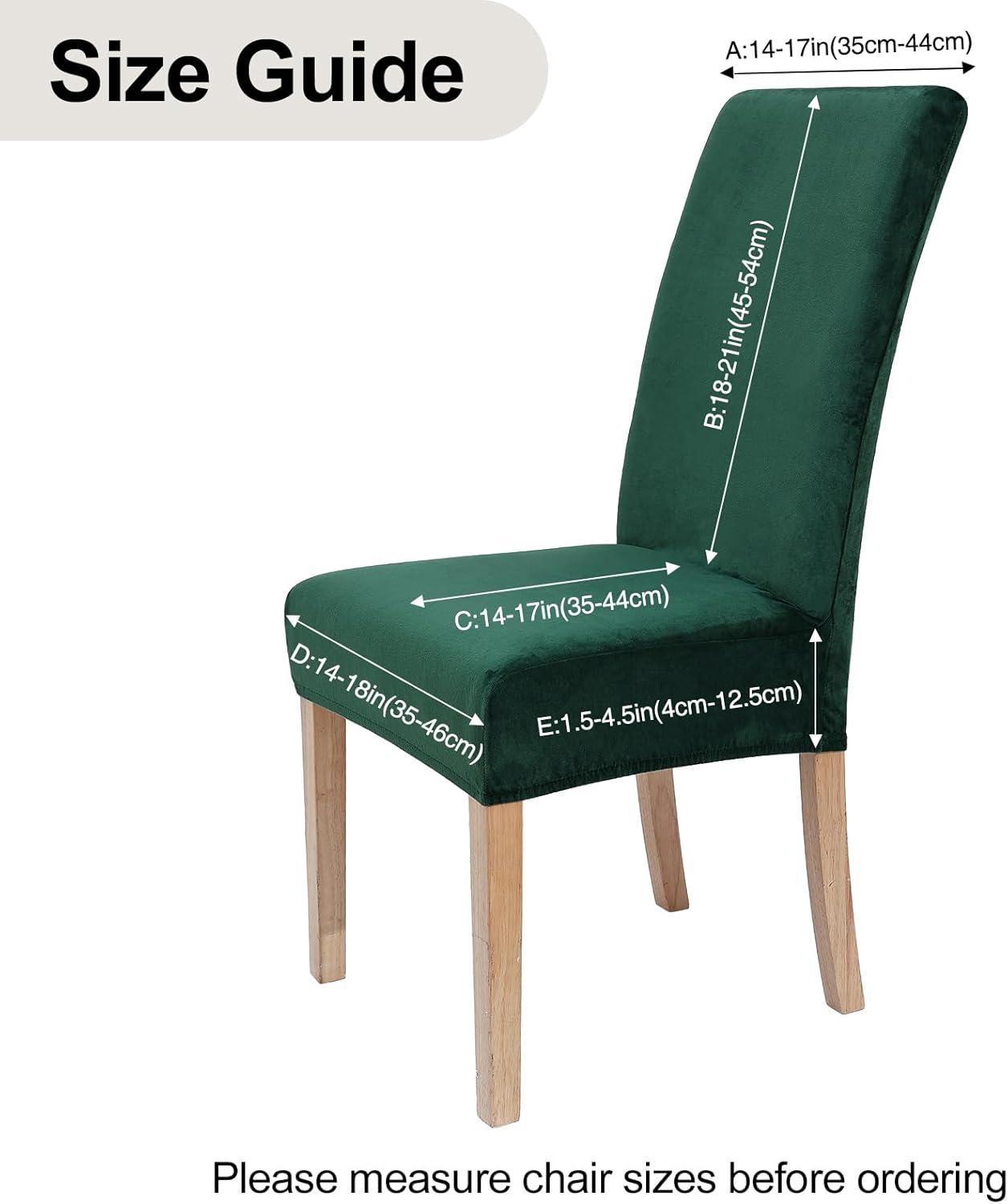 [Suitable Size] Smiry dining room chair covers fit for Back Height: 18-21inch (45-54cm); Back Width: 14-17inch (35cm-44cm); Seat Length: 14-18inch (35-46cm); Seat Width: 14-17inch (35-44cm); Seat Height 1.5-4.5inch (4cm-12.5cm). Please measure your chair sizes before ordering